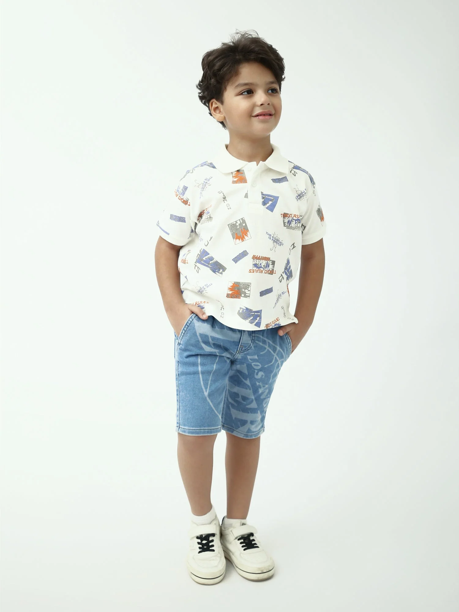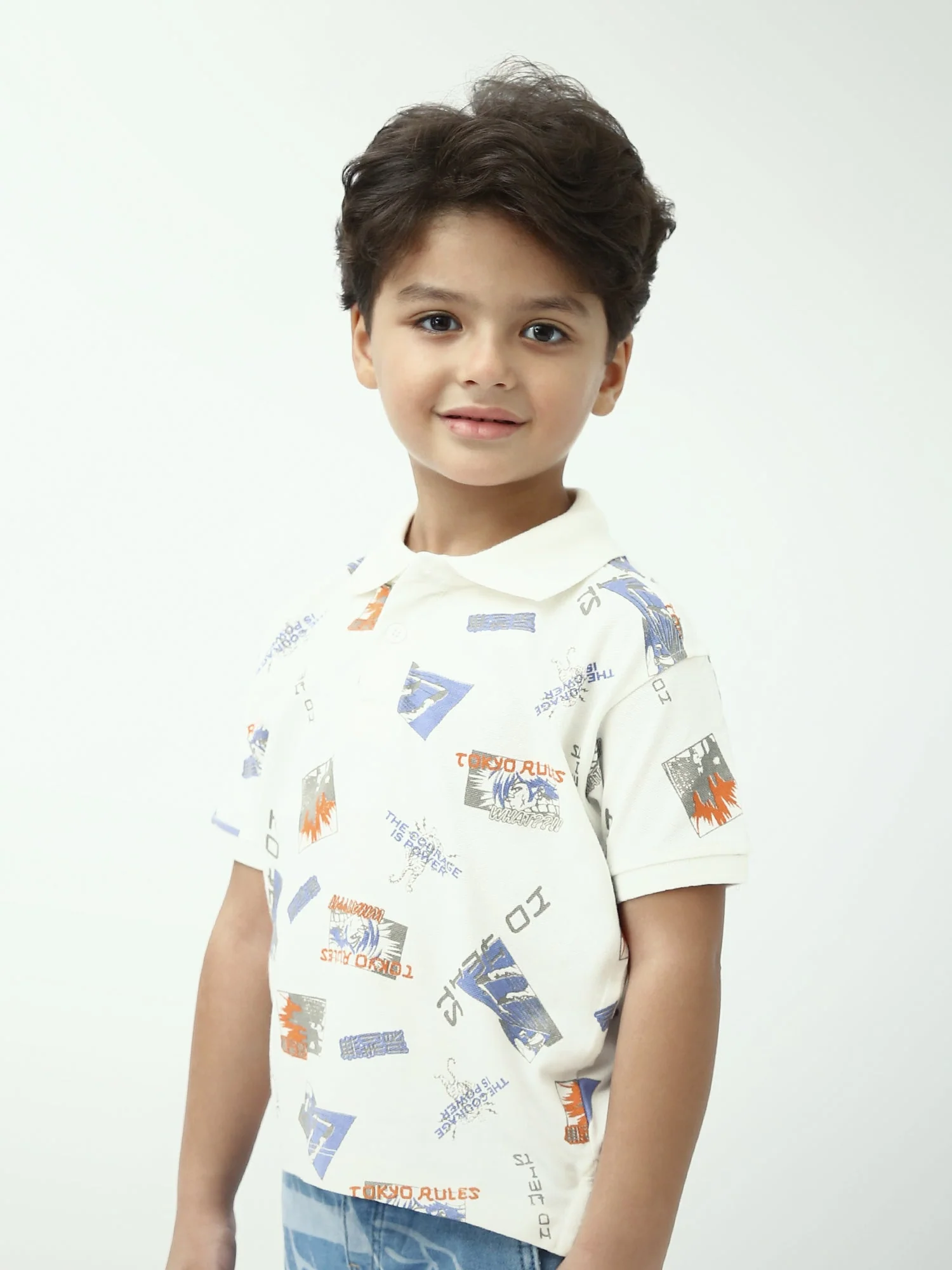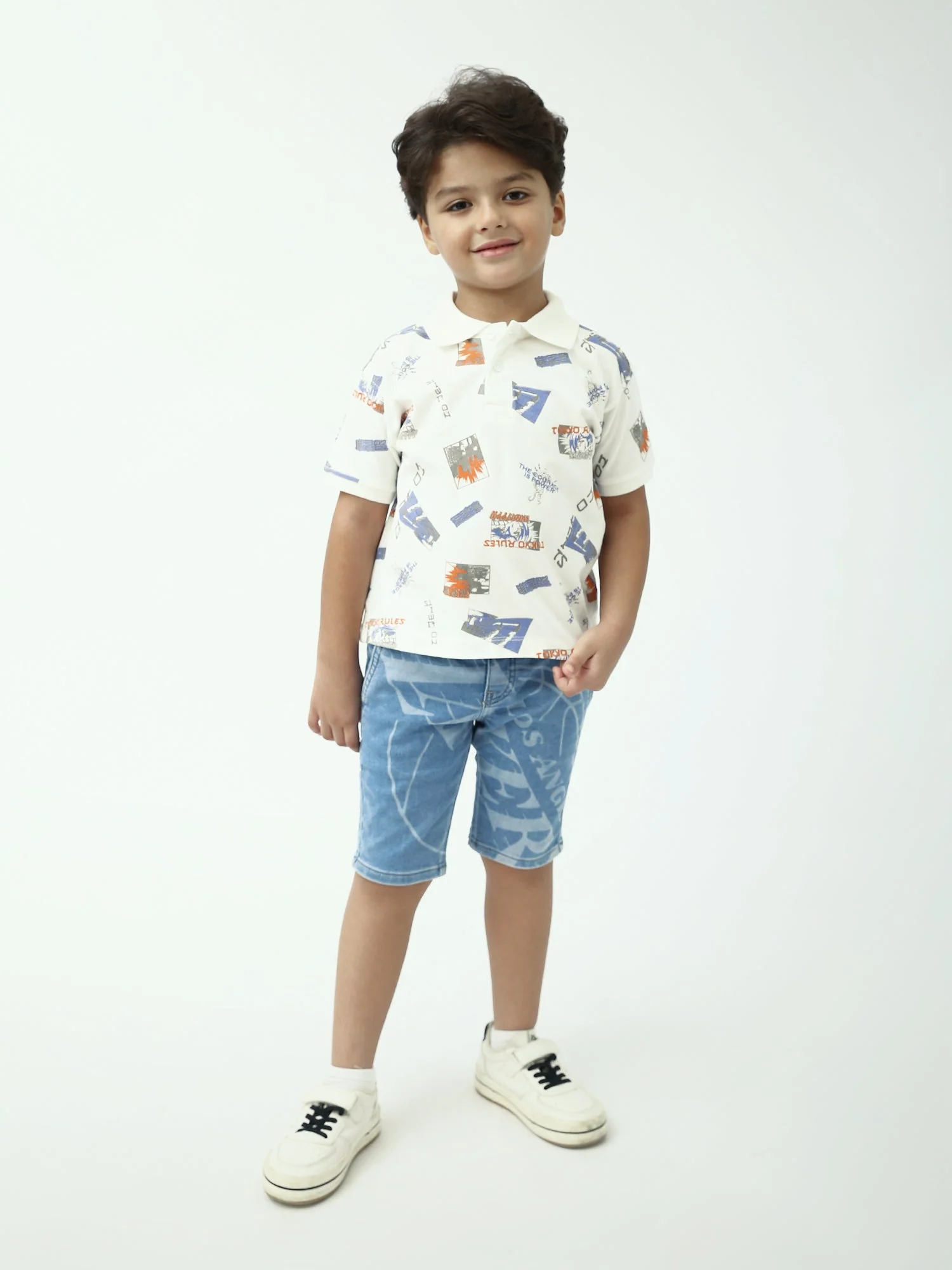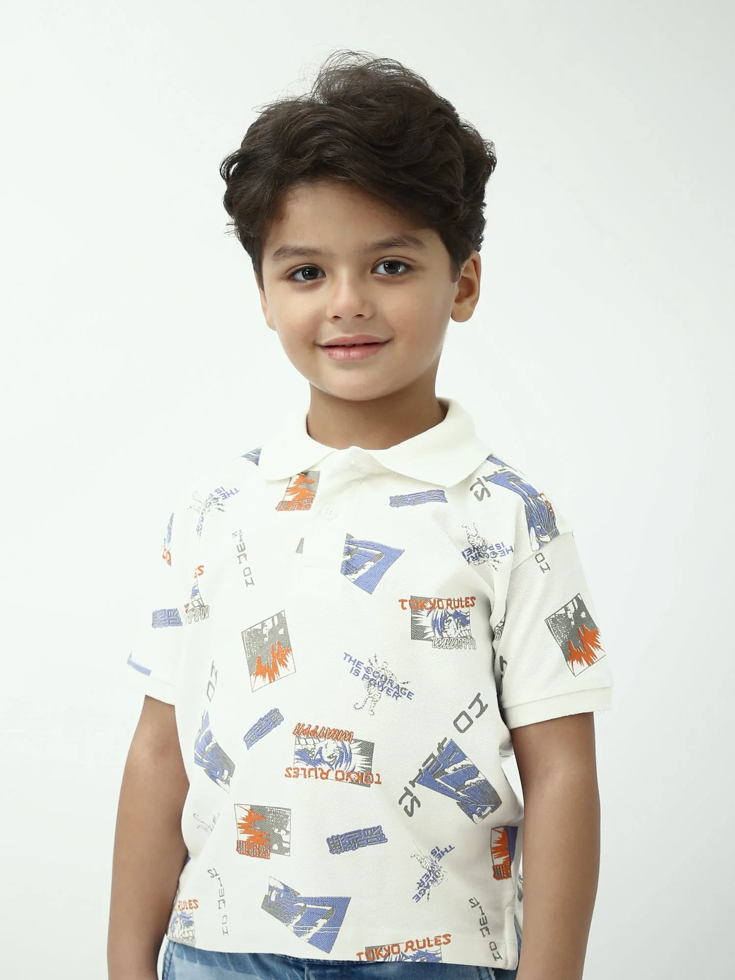 Un polo blanc tendance pour garçon, avec un imprimé all-over style streetwear pour un look moderne et décontracté. Confortable et facile à porter, il se combine parfaitement avec un jean, un short ou un pantalon cargo.
