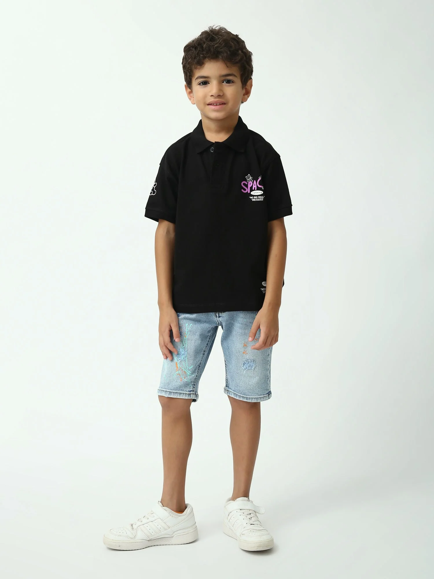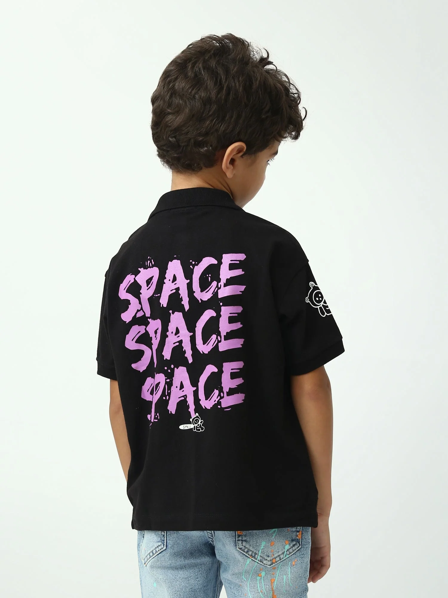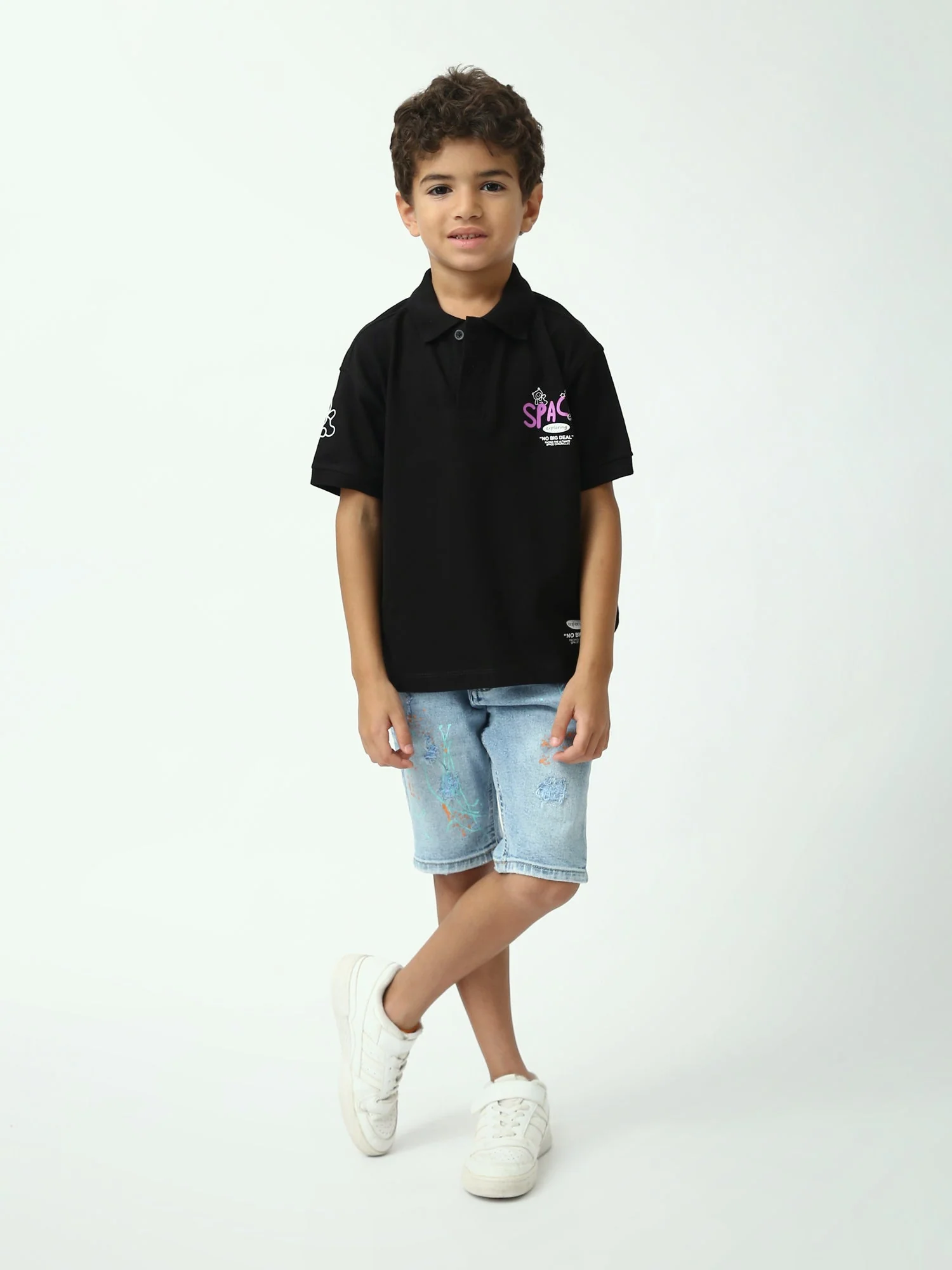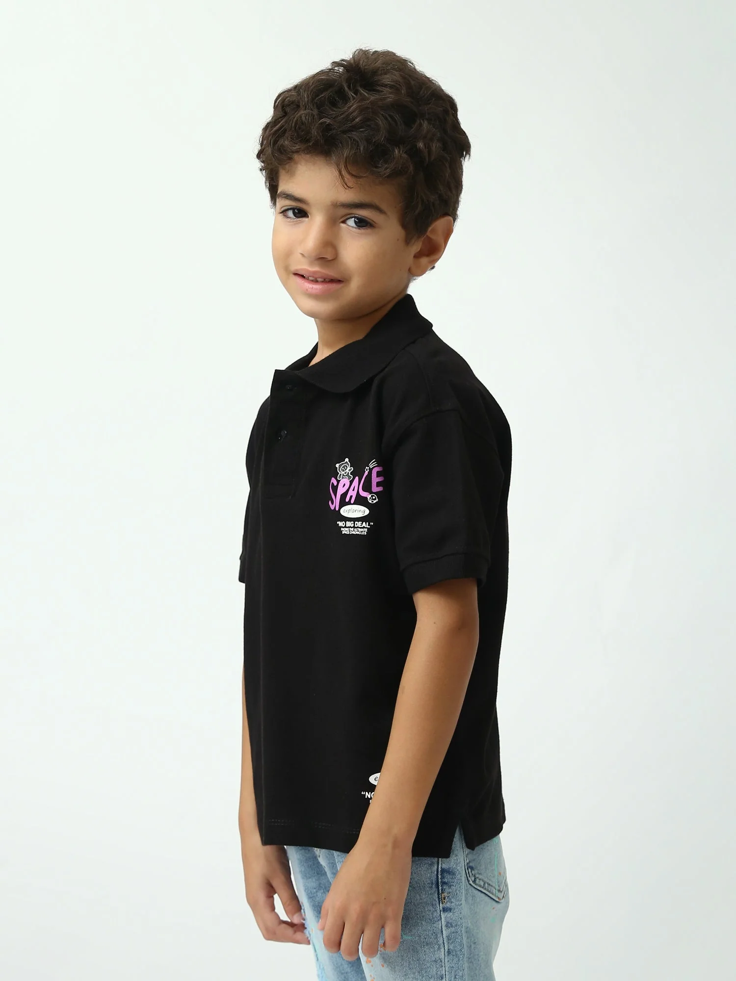 Polo garçon noir manches courtes imprimé Space, col polo – POS24SPPI75394MB1