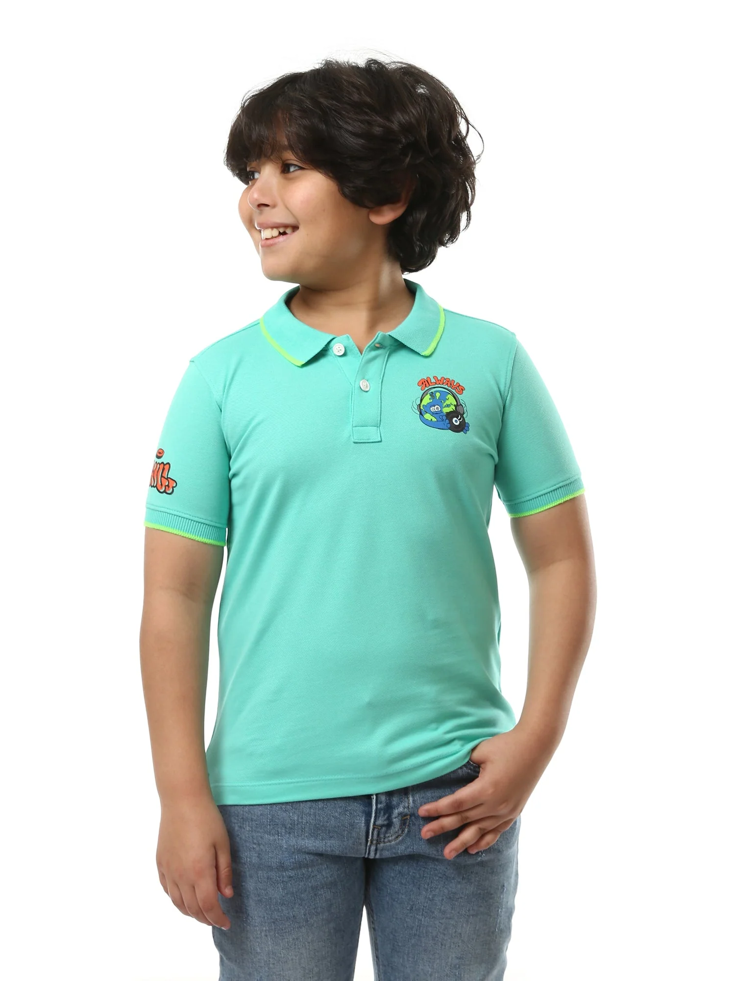 Polo pour garçon au design moderne, offrant un look à la fois amusant et élégant pour les enfants. Il se distingue par un col et des manches ornés de broderies attrayantes, ainsi que des impressions imprimées ajoutant une touche ludique au t-shirt. Confectionné dans un tissu doux et confortable, il est idéal pour un usage quotidien et diverses activités. Facile à assortir avec des jeans ou des shorts pour un look à la fois élégant et confortable tout au long de la journée.