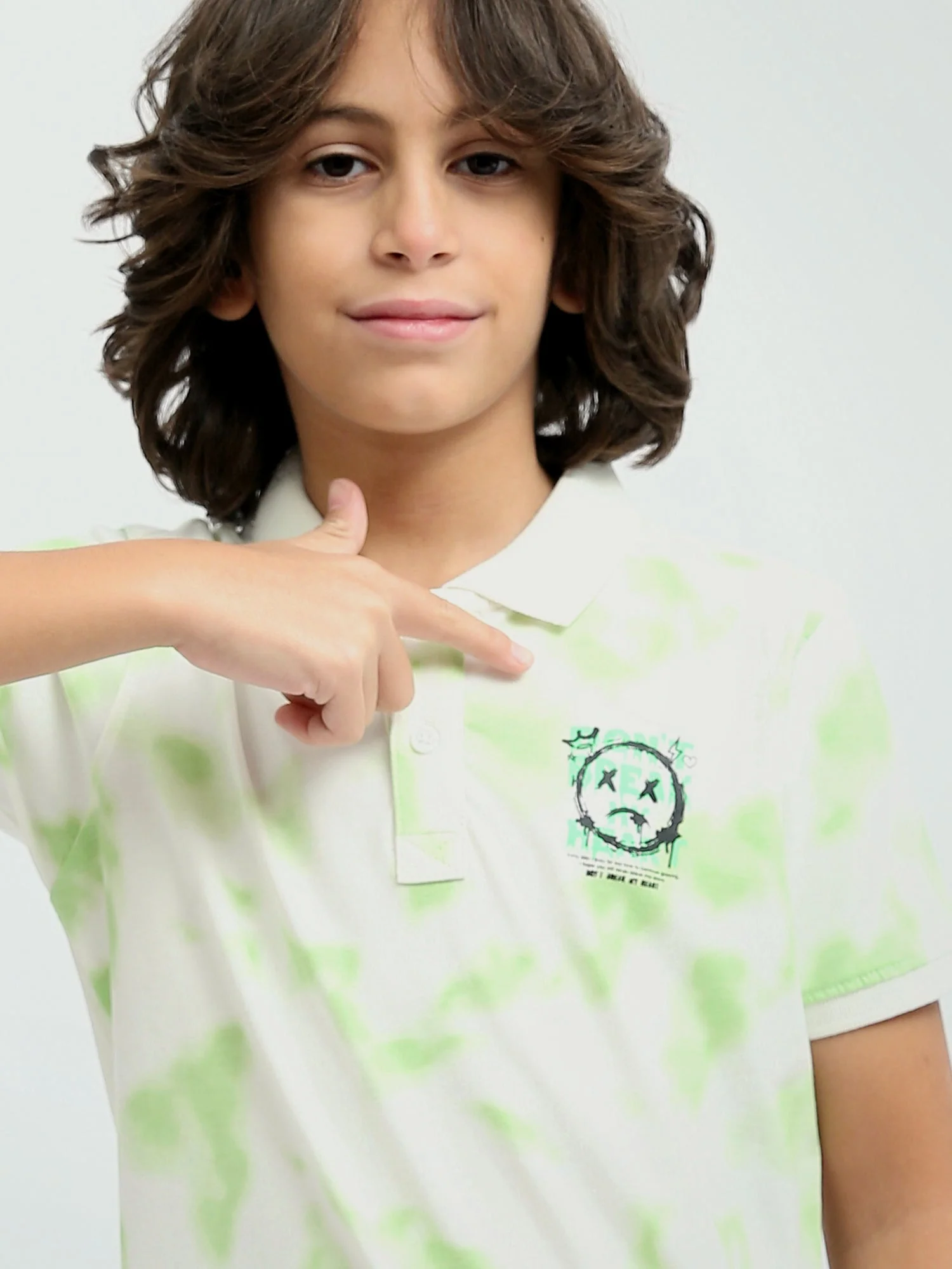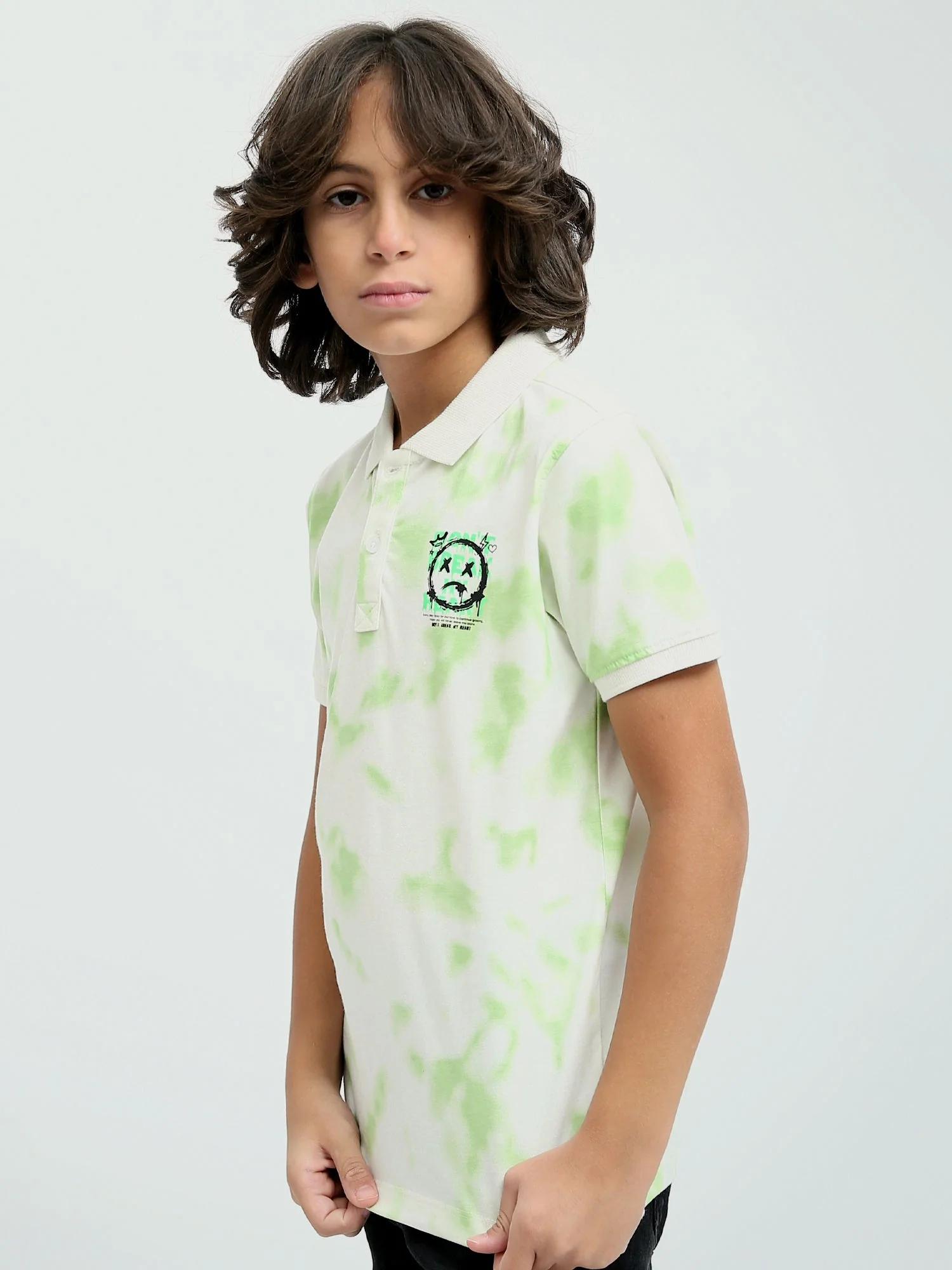 Polo pour enfant aux couleurs vives et au design moderne, en blanc avec des détails distinctifs en bleu et vert. Ce t-shirt se distingue par son col polo et ses boutons à l’avant, ajoutant une touche d’élégance simple. Le tissu doux et confortable assure un confort tout au long de la journée, tandis que le design unique apporte une touche ludique, parfaite pour le look moderne des enfants. Idéal pour un usage quotidien ou des occasions décontractées, il offrira à votre enfant une allure attrayante et joyeuse.