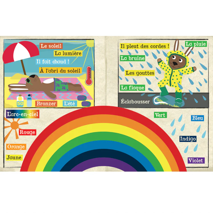Conçu pour stimuler les sens, il engage le toucher, l’ouïe et la vue avec des illustrations colorées et des textures variées. Bébé découvre le monde météo à travers des mots simples et des images adaptées, favorisant ainsi l’apprentissage du langage et la motricité fine en manipulant les pages.