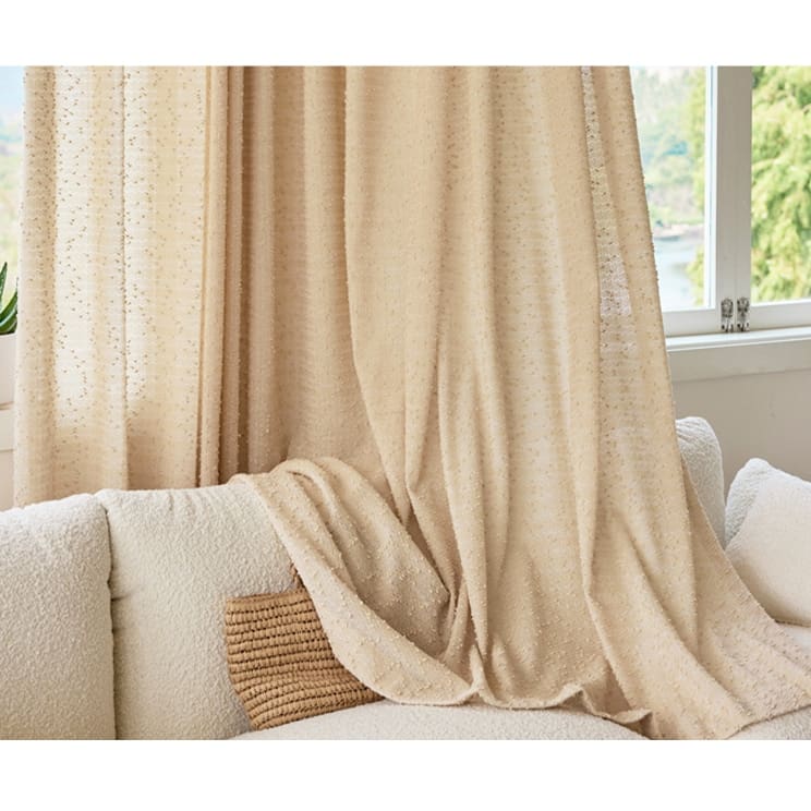 La texture d’un cocoon Le tissage texturé induit un style bohème, très tendance et la finesse de la maille laisse passer la lumière du jour, juste ce qu’il faut pour une atmosphère à la fois lumineuse et intimiste. Parfait dans tous les styles d’intérieur, sa matière douce et douillette crée un confort visuel. Notre rideau […]