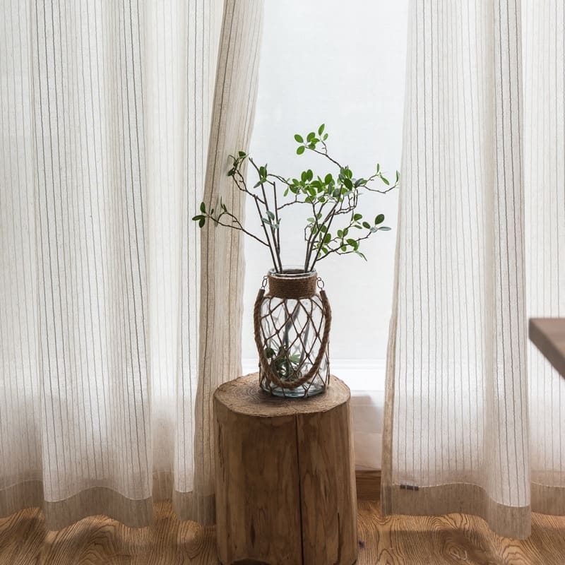 Rideau léger en coton et lin à rayures