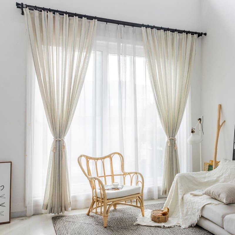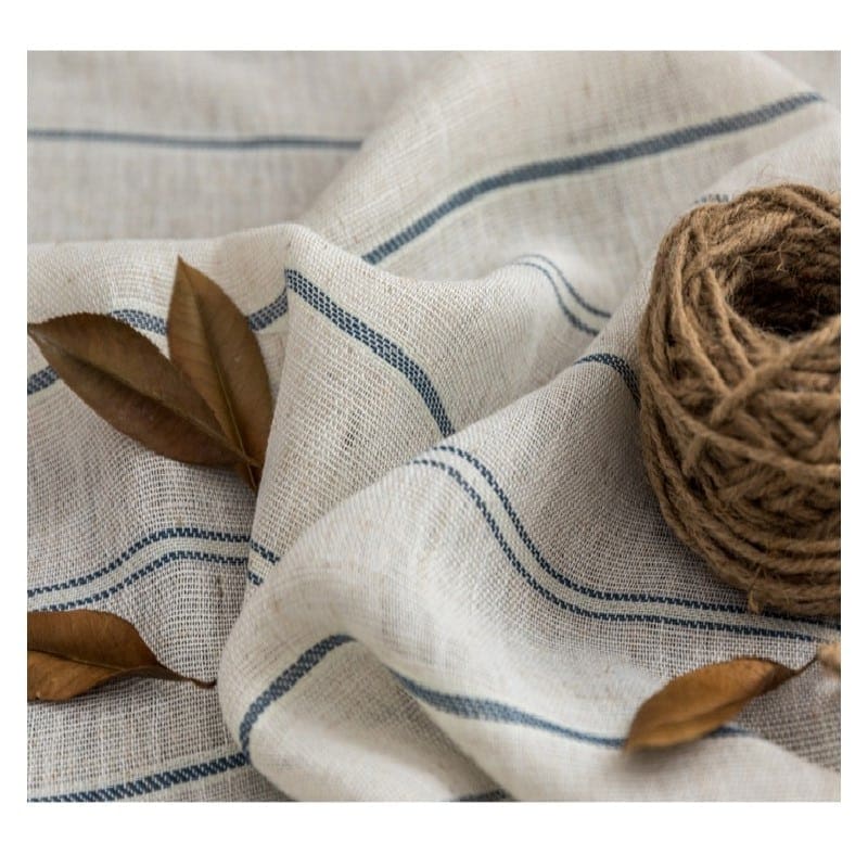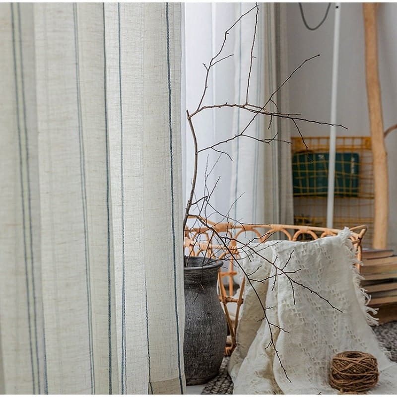 Rideau léger en coton et lin rayé bleu
