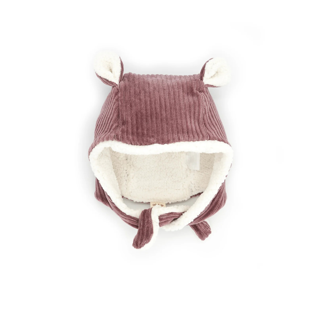 Réversible et plein de charme, il offre deux styles en un : une face en velours côtelé parme élégant et lumineux, et une face en teddy ultra doux pour une sensation de chaleur enveloppante. Sa forme bien couvrante protège parfaitement la tête et les oreilles, tandis que les liens à nouer sous le menton assurent un maintien impeccable sans jamais gêner bébé.