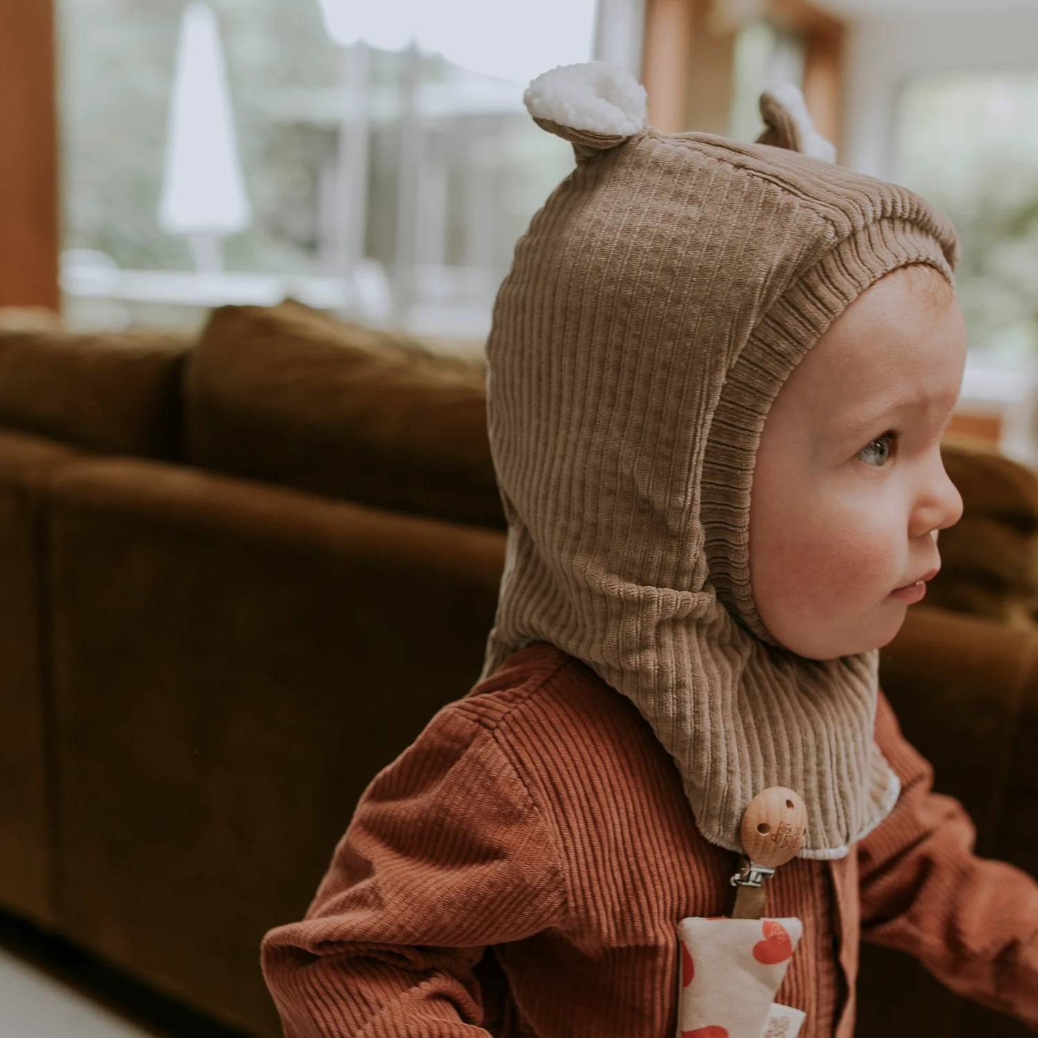 Cagoule Bébé Velours Taupe – Confort & Élégance d’Hiver