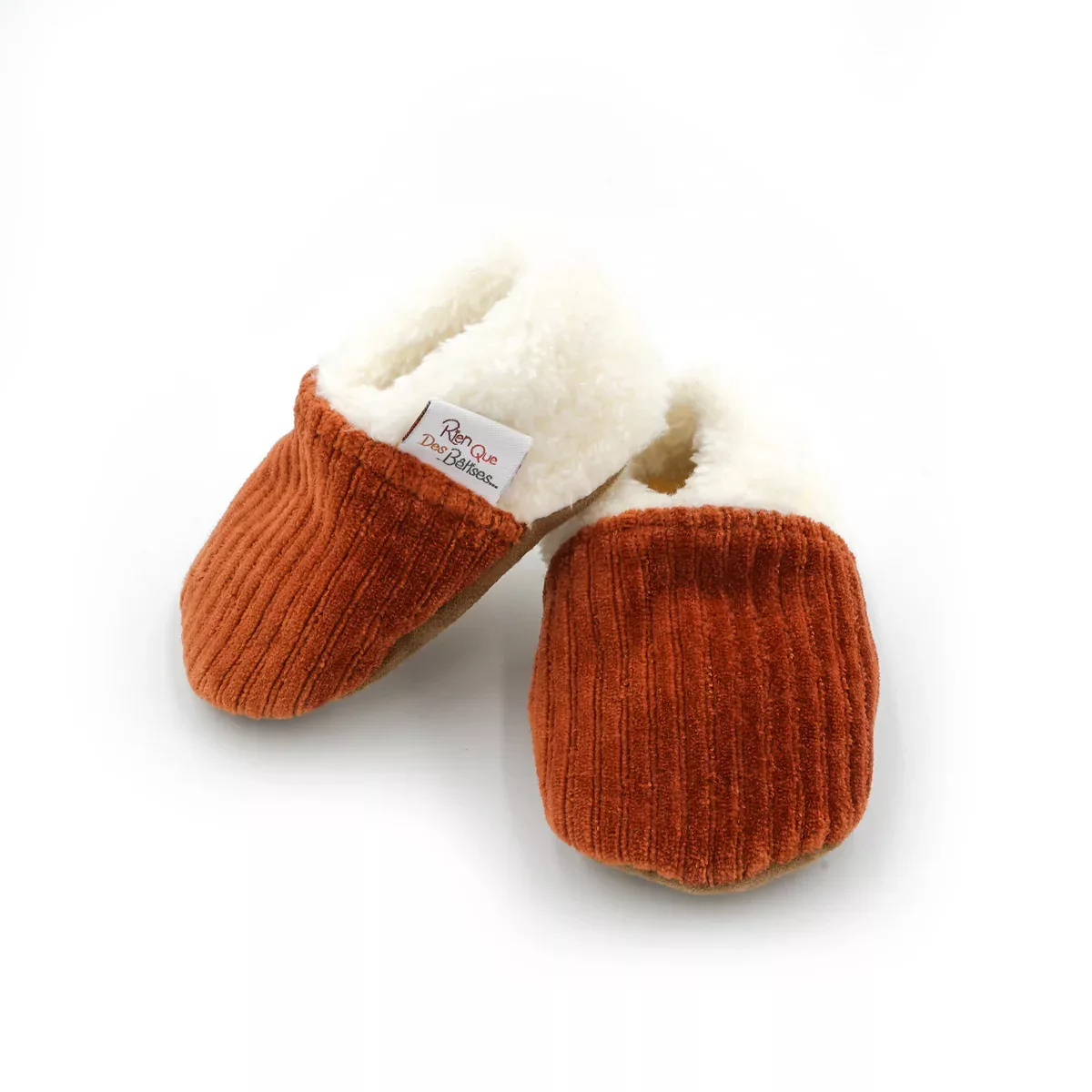 Découvrez nos chaussons en velours paprika, confectionnés entièrement à la main dans le nord de la France, à partir de matières nobles et sans substances chimiques. Ces chaussons côtelés sont idéaux pour garder les petits pieds de votre bébé au chaud tout en l’accompagnant dans ses premiers pas.