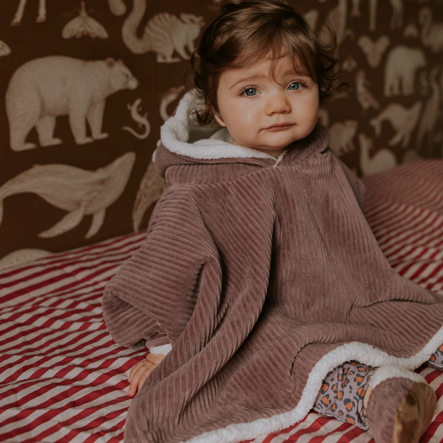 Le velours côtelé parme de qualité supérieure confère à ce poncho une élégance douce et raffinée, parfaite pour les looks d’hiver, tandis que sa doublure en teddy moelleux assure un confort optimal et une chaleur enveloppante. Les tissus utilisés sont hypoallergéniques et certifiés OEKO-TEX Standard 100, garantissant l’absence de substances nocives pour la peau délicate des bébés. Vous pouvez ainsi protéger votre enfant du froid en toute sérénité, même dans les sièges auto, sans devoir retirer de manteau encombrant.