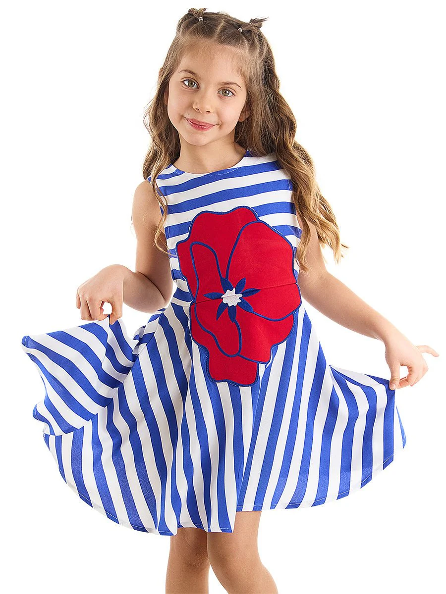 Robe Fille Viscose Rayée avec Appliqué Coquelicot
