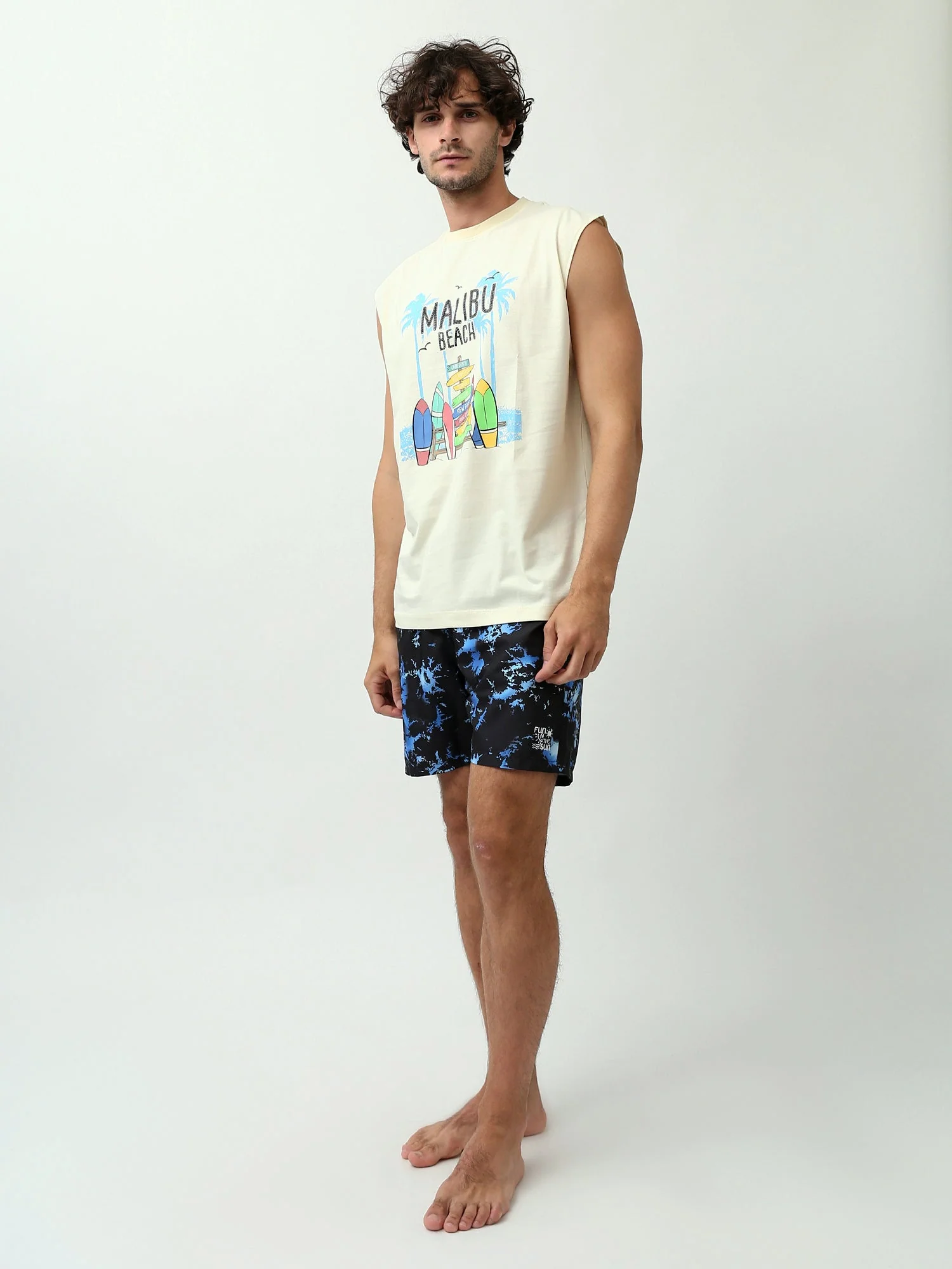 Profitez de l’été avec ce short de bain homme au design moderne et pratique. Son motif attrayant apporte une touche unique à votre look, tandis que sa taille élastique avec cordon de serrage garantit un ajustement parfait et un confort optimal. Fabriqué avec un tissu à séchage rapide, ce short permet une grande liberté de mouvement, idéal pour les activités aquatiques ou les journées à la plage. Parfait pour les vacances, la natation ou tout sport aquatique, il offre un style sportif et confortable pour des journées d’été actives.
