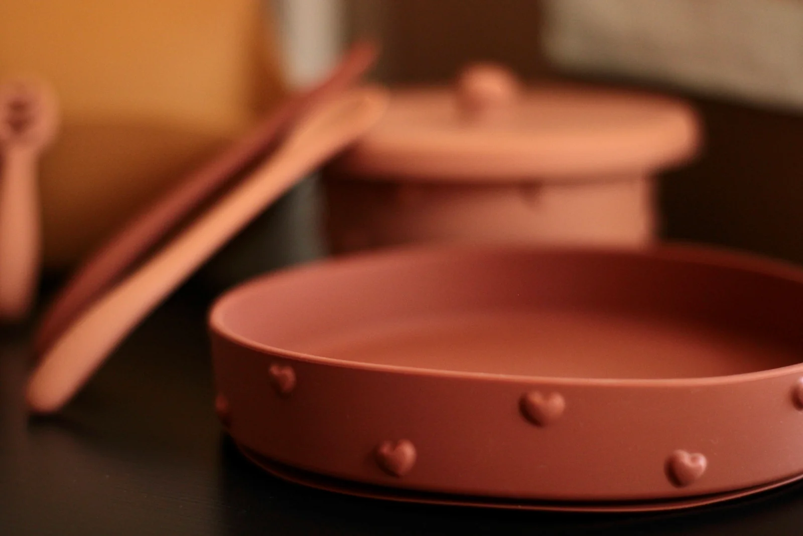 Soina – Assiette à ventouse châtaigne avec cœurs