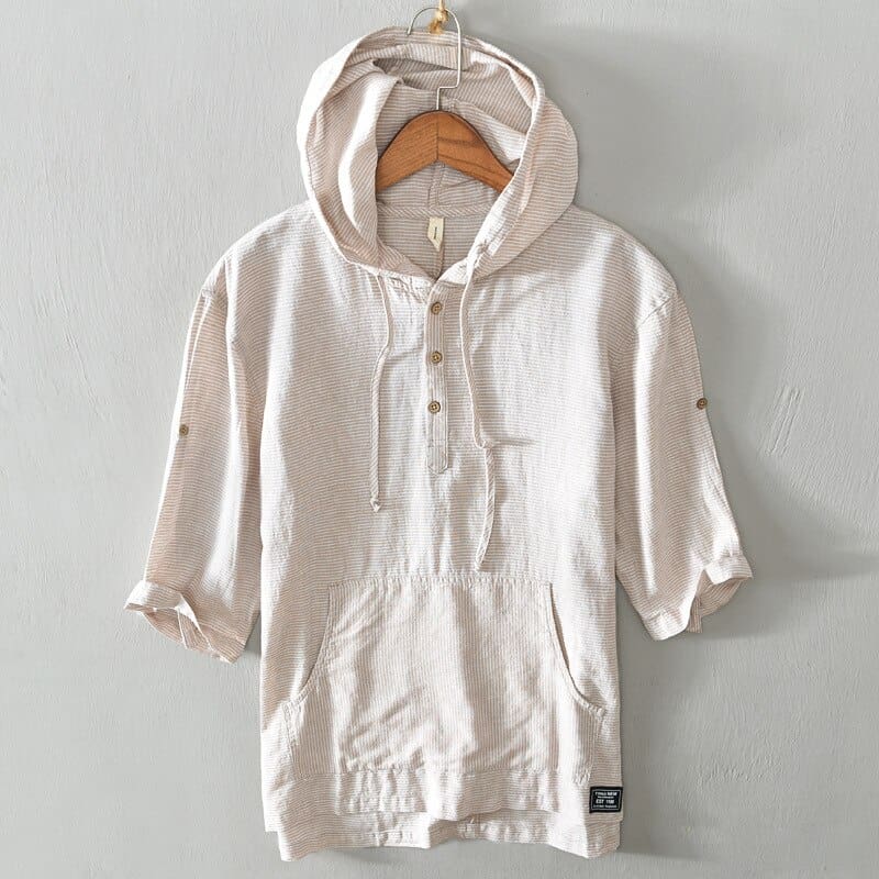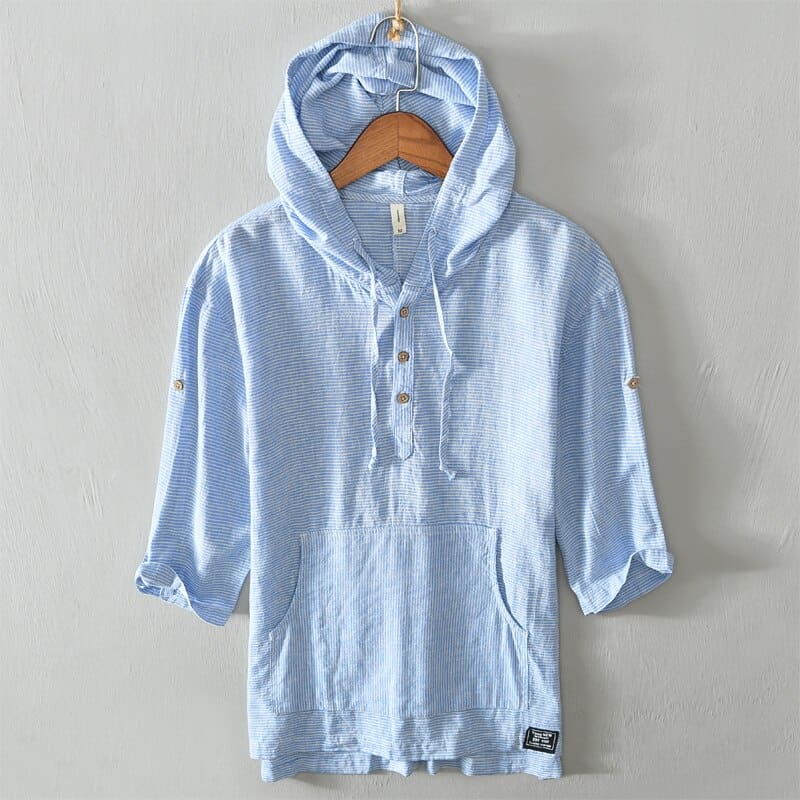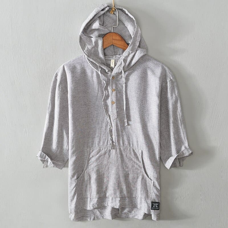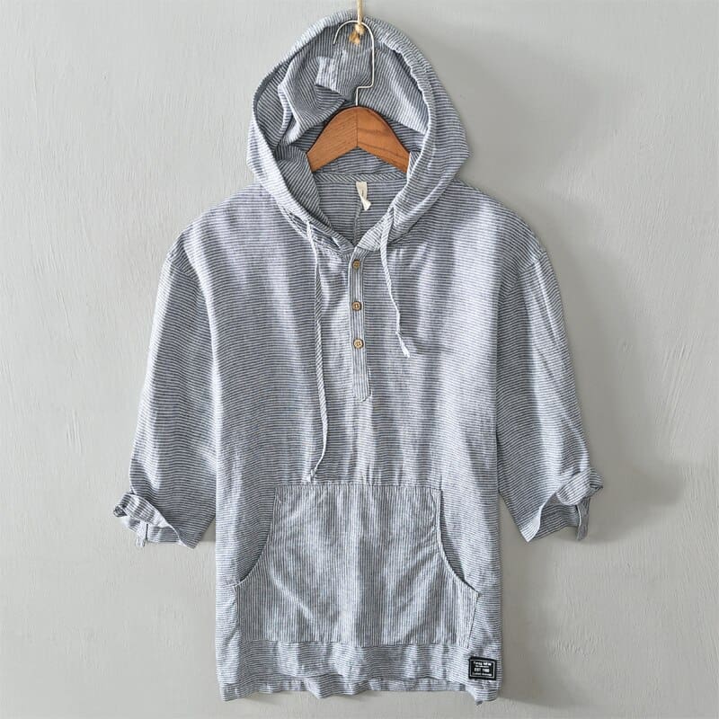 Sweat à capuche léger en coton et lin à rayures pour homme