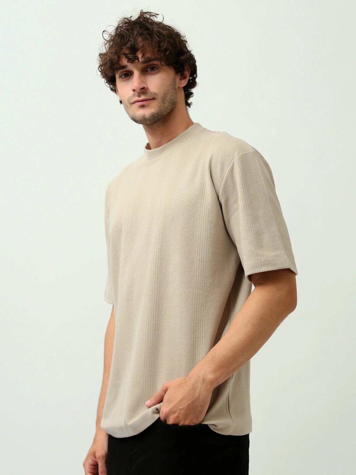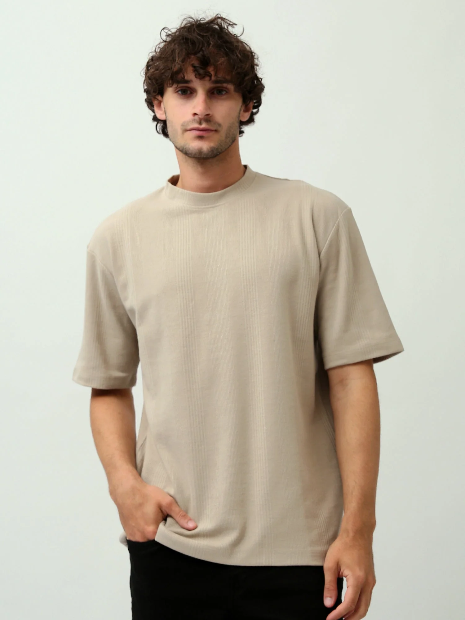 T-shirt beige homme en tissu côtelé – Confort et style décontracté – TSH24SBRO15006TM1