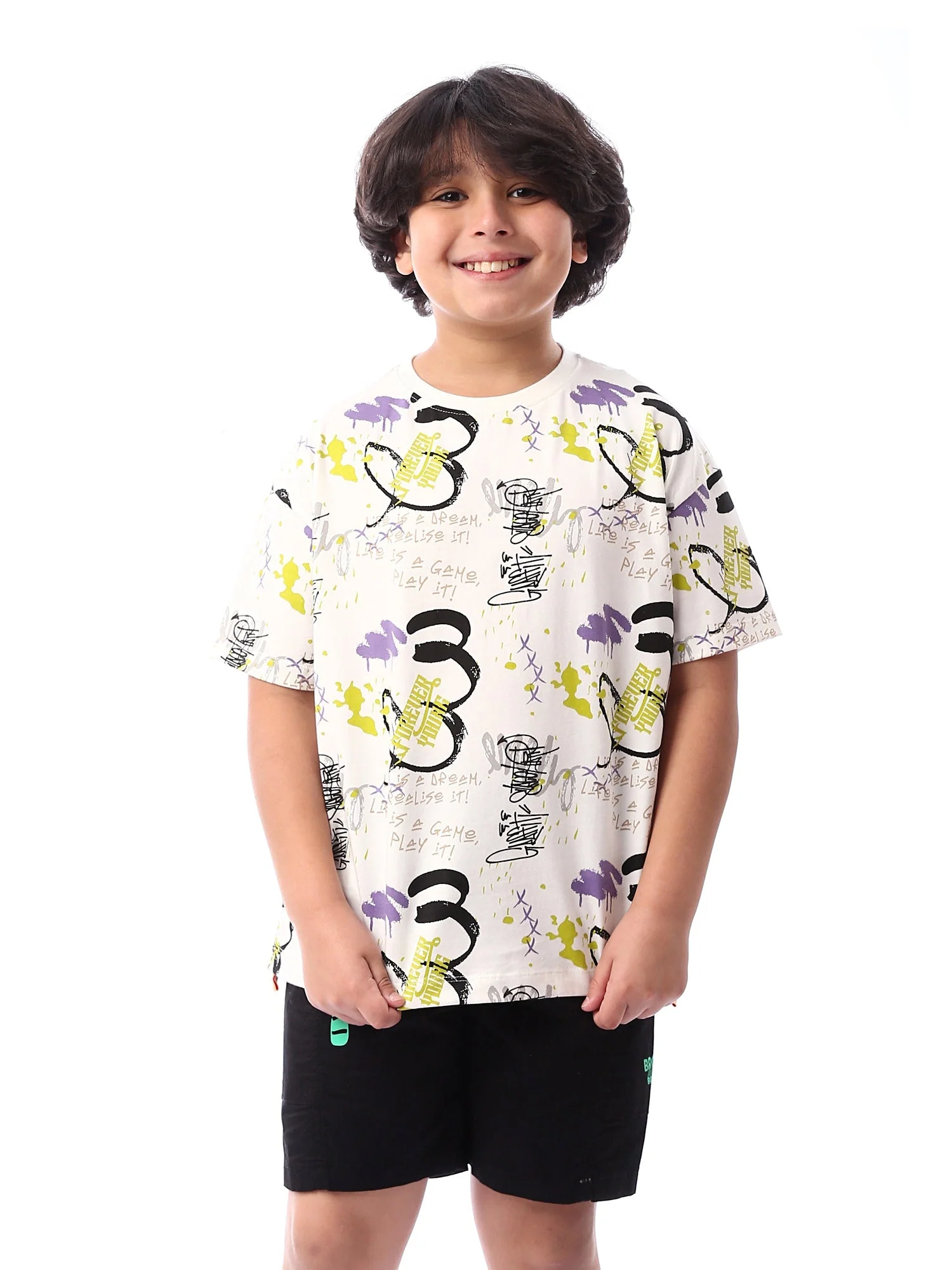 Ce t-shirt enfant « Game Play » est un choix parfait pour un look jeune et dynamique. Avec son imprimé coloré mélangeant des graphismes modernes et des textes amusants, il se démarque par son énergie positive et son esprit ludique. Le design unique avec des éclaboussures de peinture et des éléments graphiques apporte une touche de fun et de créativité à la tenue de votre enfant. Fabriqué dans un tissu doux et confortable, ce t-shirt est idéal pour les journées décontractées, que ce soit pour jouer, se détendre ou explorer. Associez-le à un short ou un jean pour compléter le look.