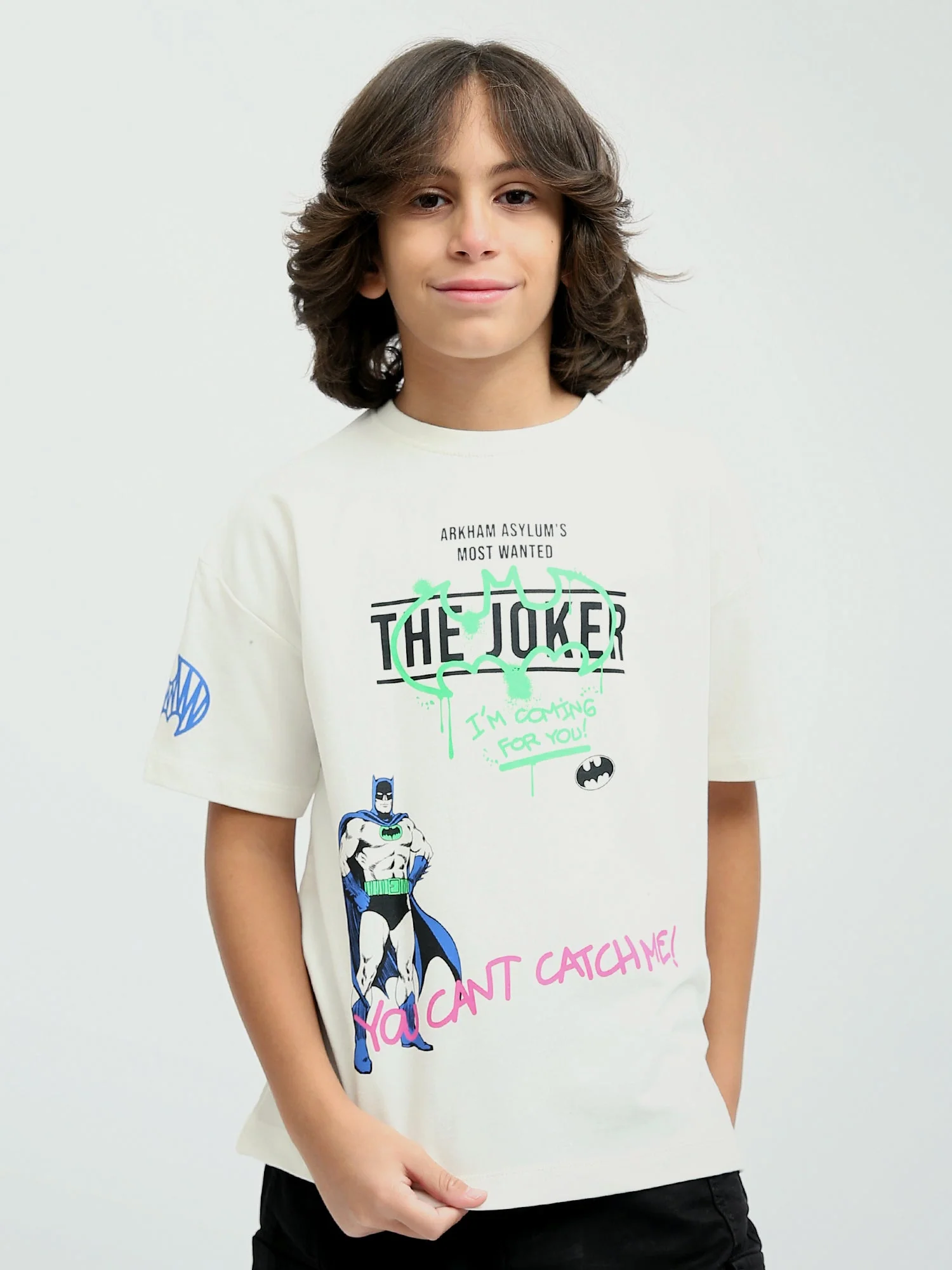 Ce t-shirt pour garçon est un must-have pour les fans de Batman et Joker ! Avec son design audacieux et coloré, représentant Batman et le Joker, ce t-shirt attire l’attention tout en étant confortable et stylé. Le message « YOU CAN’T CATCH ME! » sur le devant et « BATMAN VS JOKER » au dos exprime l’esprit dynamique et l’attaque de ces deux super-héros emblématiques. Fabriqué en coton doux, il est idéal pour un look décontracté, tout en restant fun et moderne. Ce t-shirt est parfait pour les sorties entre amis ou pour ajouter du caractère à une tenue quotidienne.