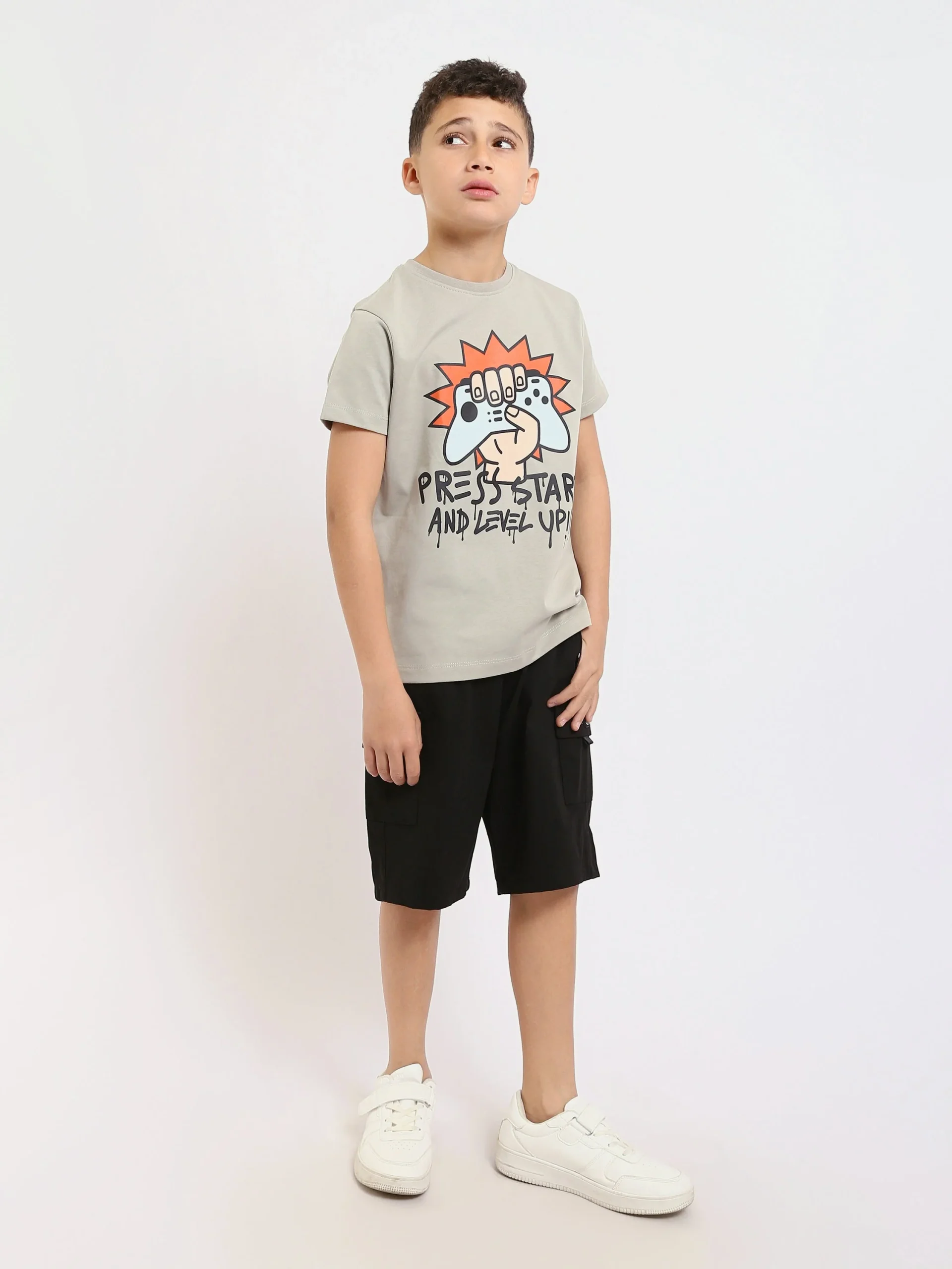 Ce t-shirt pour garçon, de couleur gris, est parfait pour les petits gamers ! Avec son imprimé créatif représentant une manette de jeu et le message « Press Start and Level Up! », il ajoutera une touche dynamique et moderne à la garde-robe de votre enfant. Fabriqué en coton doux, ce t-shirt offre confort et légèreté pour toutes les aventures du quotidien. Idéal pour les sorties décontractées ou pour les passionnés de jeux vidéo, il se porte facilement avec un jean ou un short.