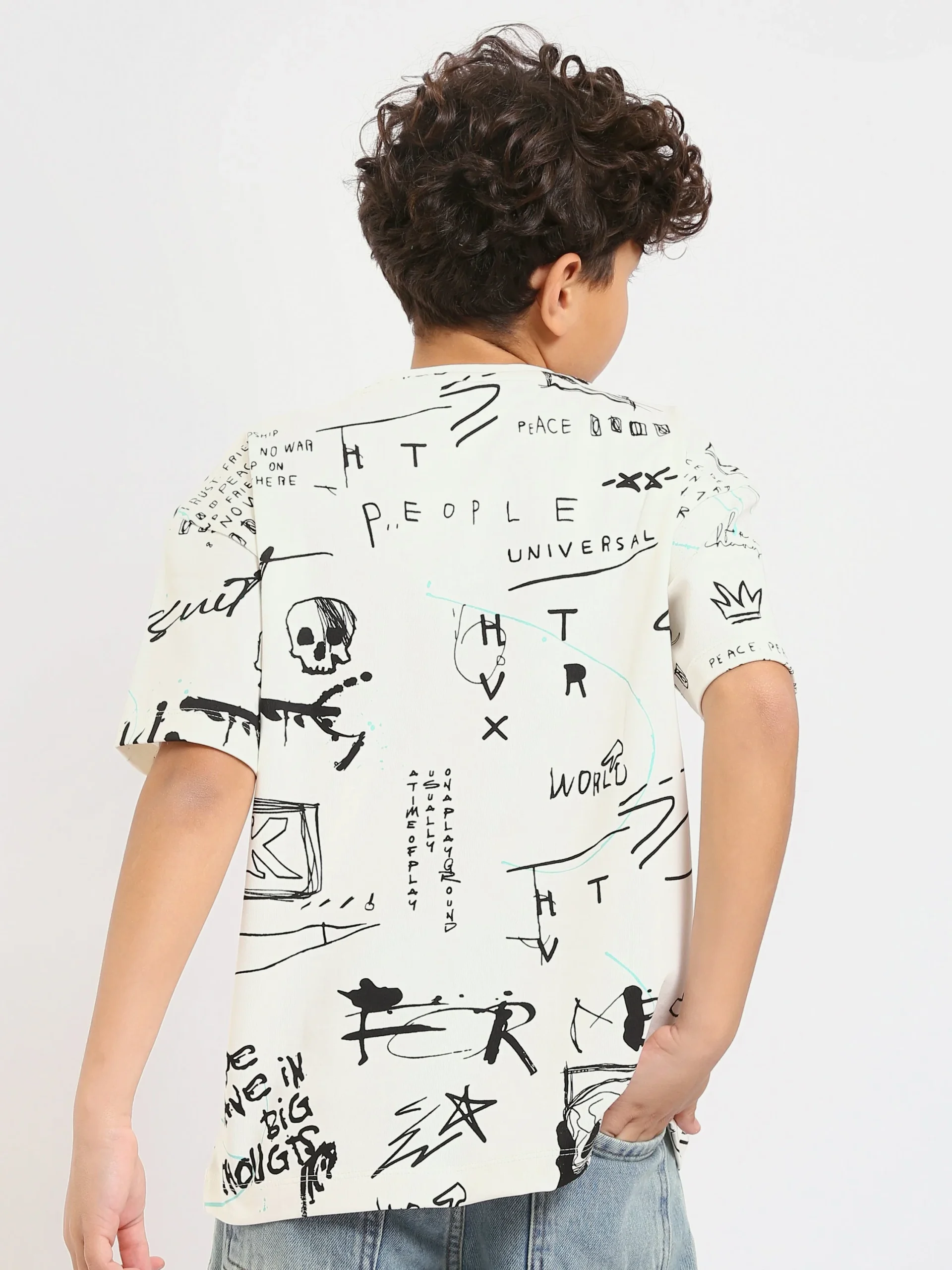T-shirt Garçon – Imprimé Artistique ‘Peace & People’ en Off-White – TSH25SARS32734TB1