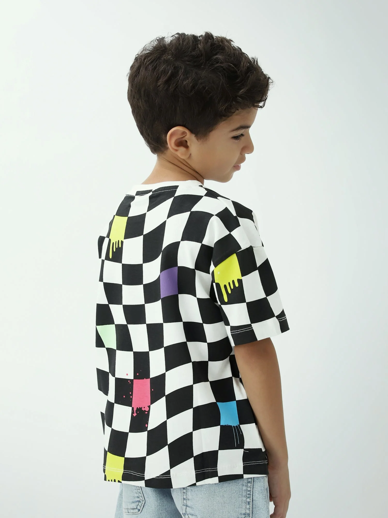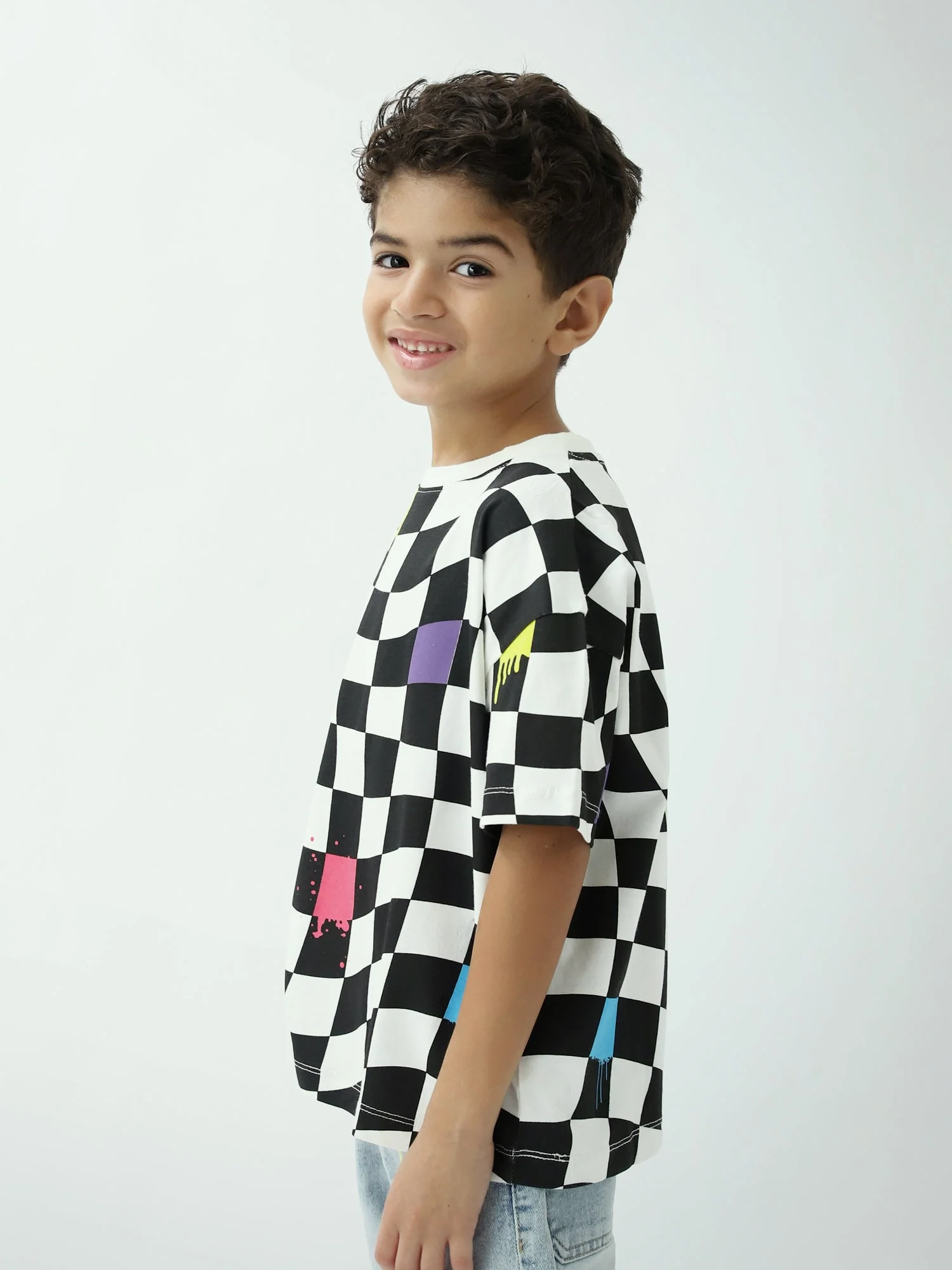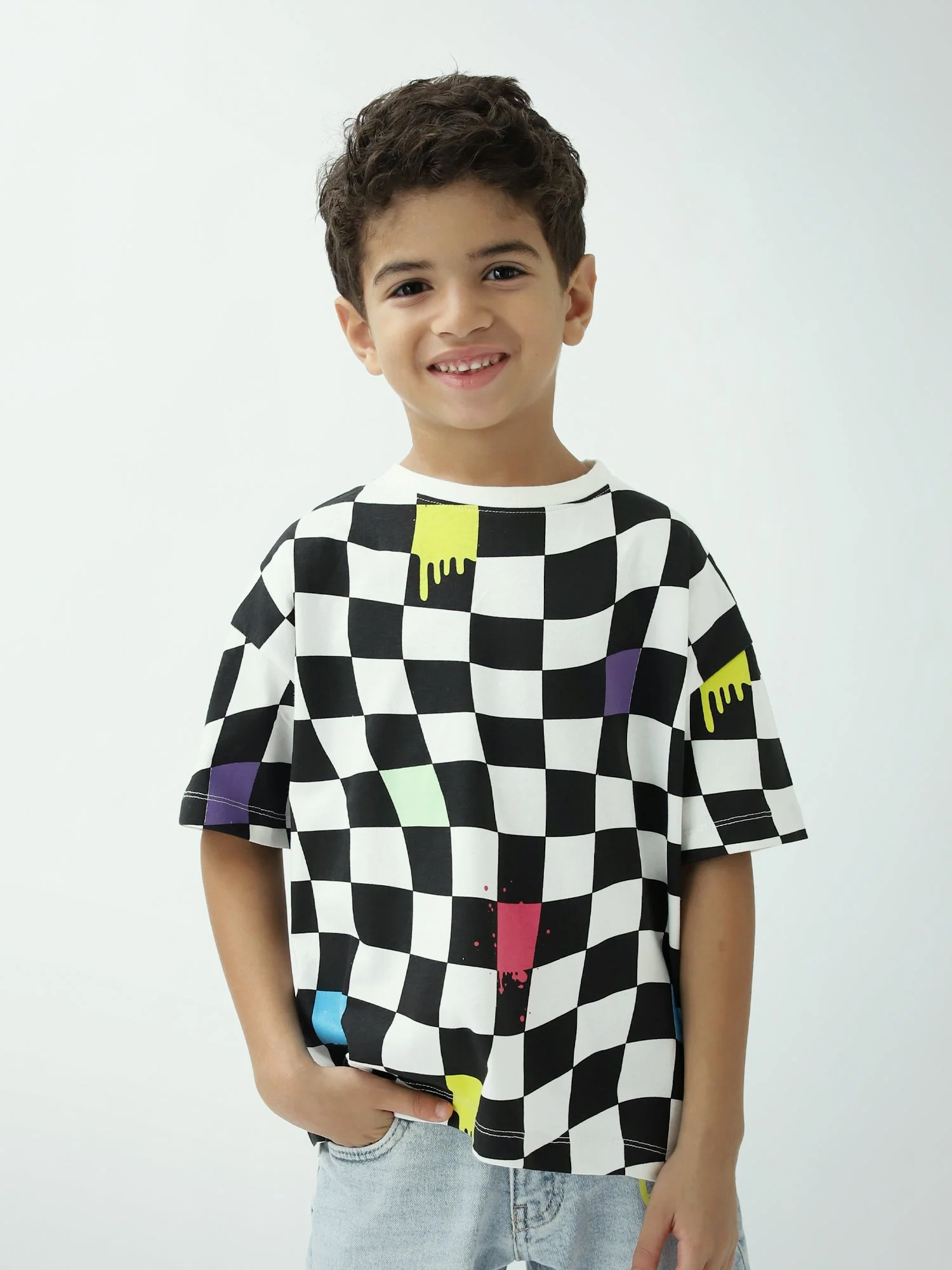 T-shirt garçon imprimé damier – Noir & blanc, manches courtes – TSH24SARO75477MB1