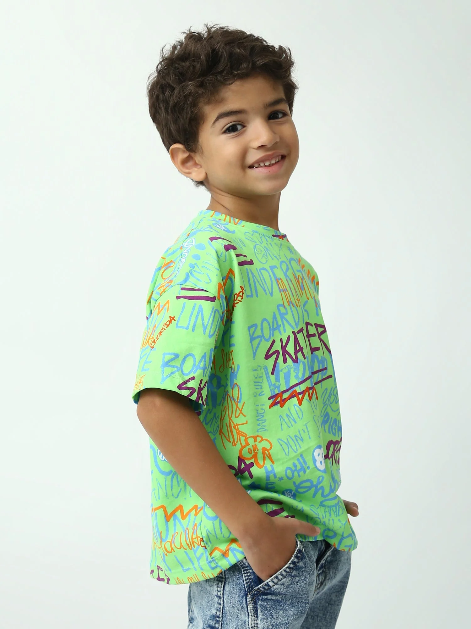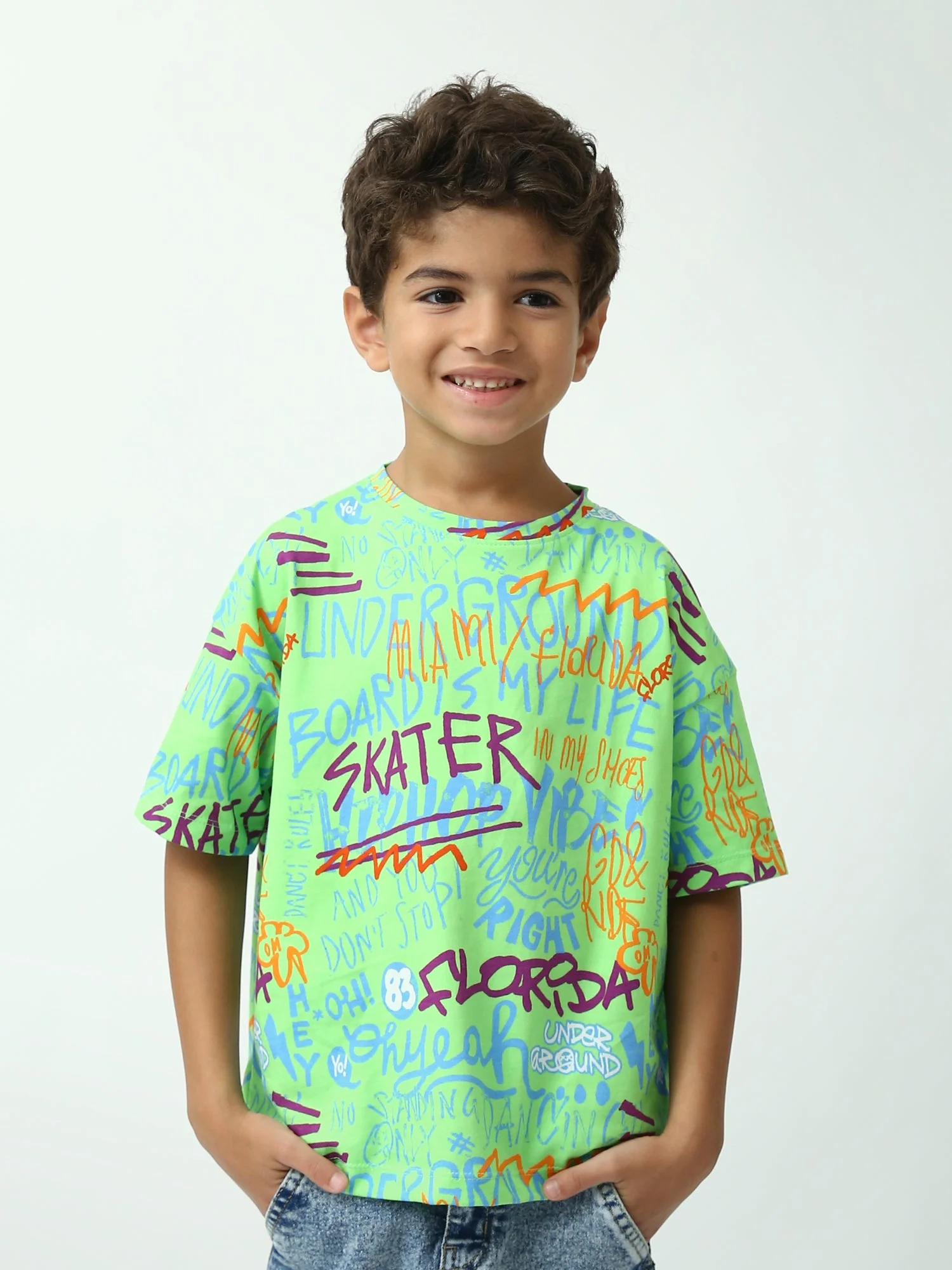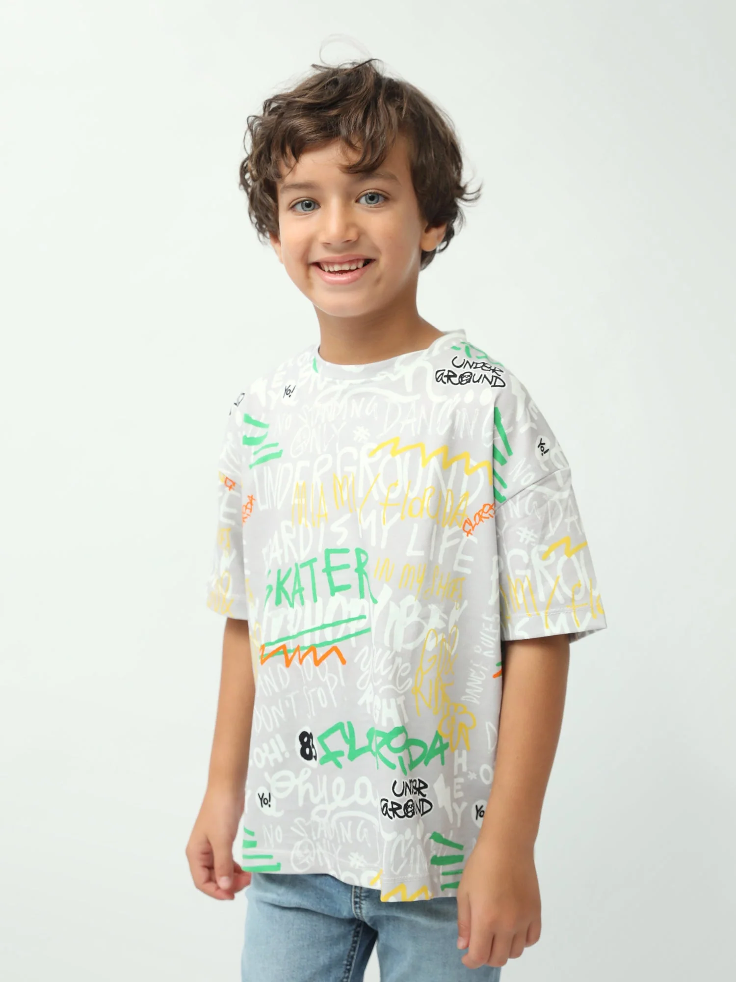 T-shirt garçon imprimé graffiti Skater, manches courtes, coupe oversize – TSH24SARO75265MB1