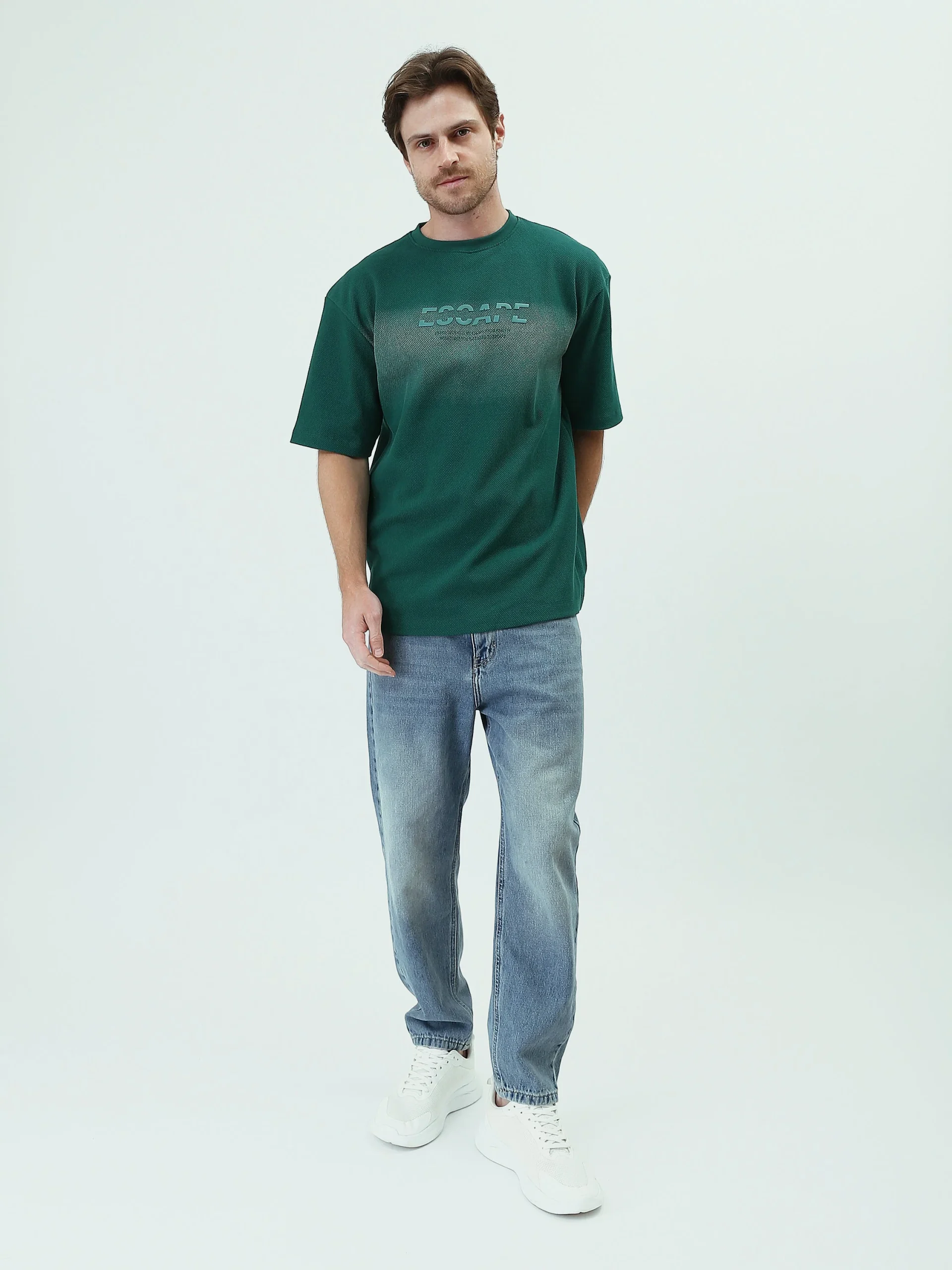 Ce t-shirt vert pour homme est un choix parfait pour ceux qui recherchent à la fois confort et style. Son design graphique avec l’inscription « ESCAPE » sur le devant donne une touche audacieuse à votre look. Conçu en coton de haute qualité, ce t-shirt offre une coupe décontractée idéale pour les journées en ville ou les moments de détente. Sa couleur verte unique et son motif moderne en font un must-have dans votre garde-robe. Disponible en plusieurs tailles, il est parfait pour toute occasion décontractée.