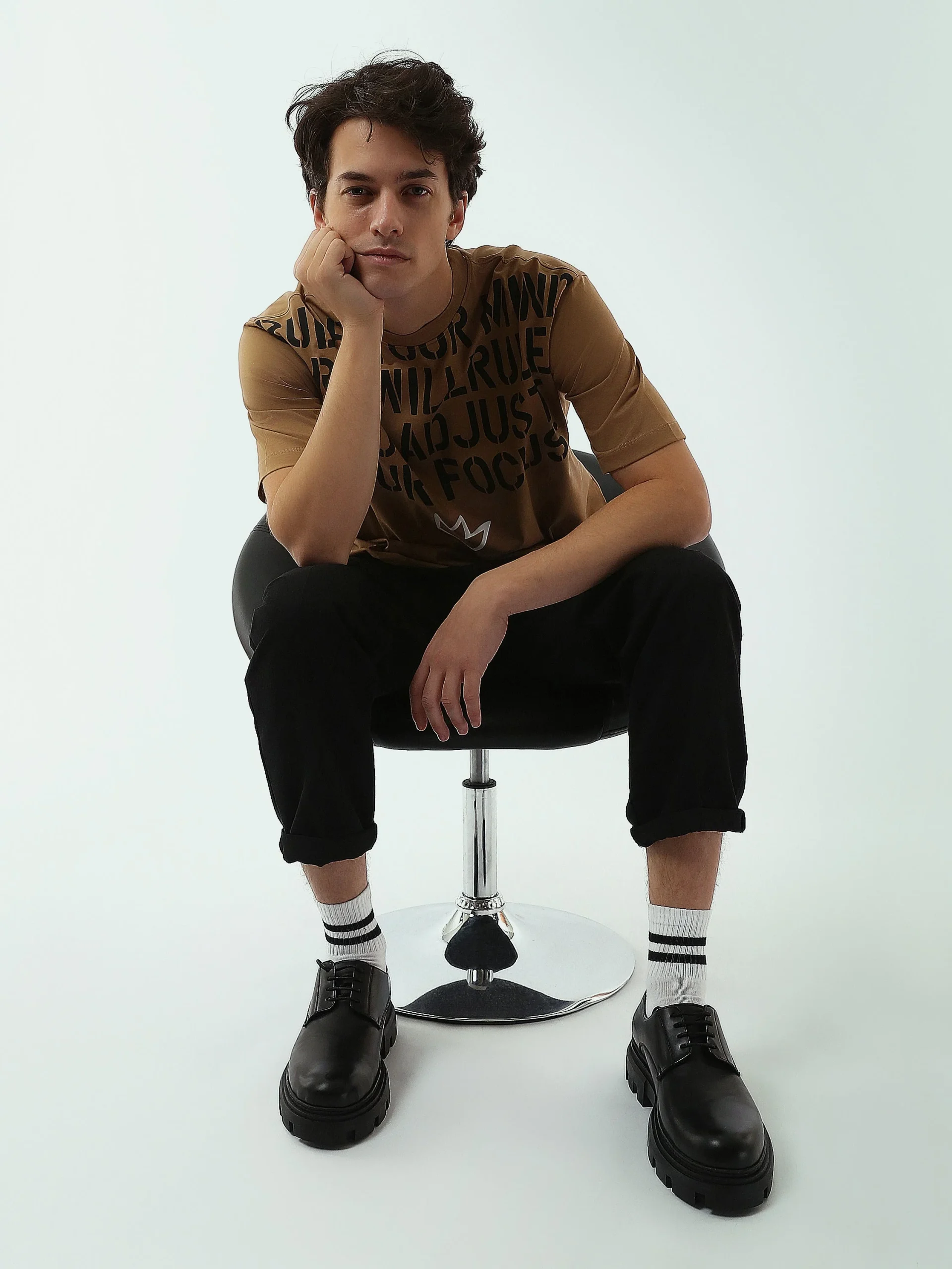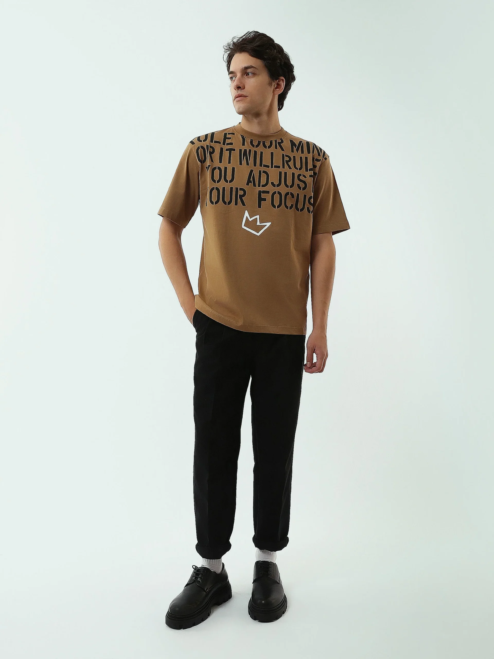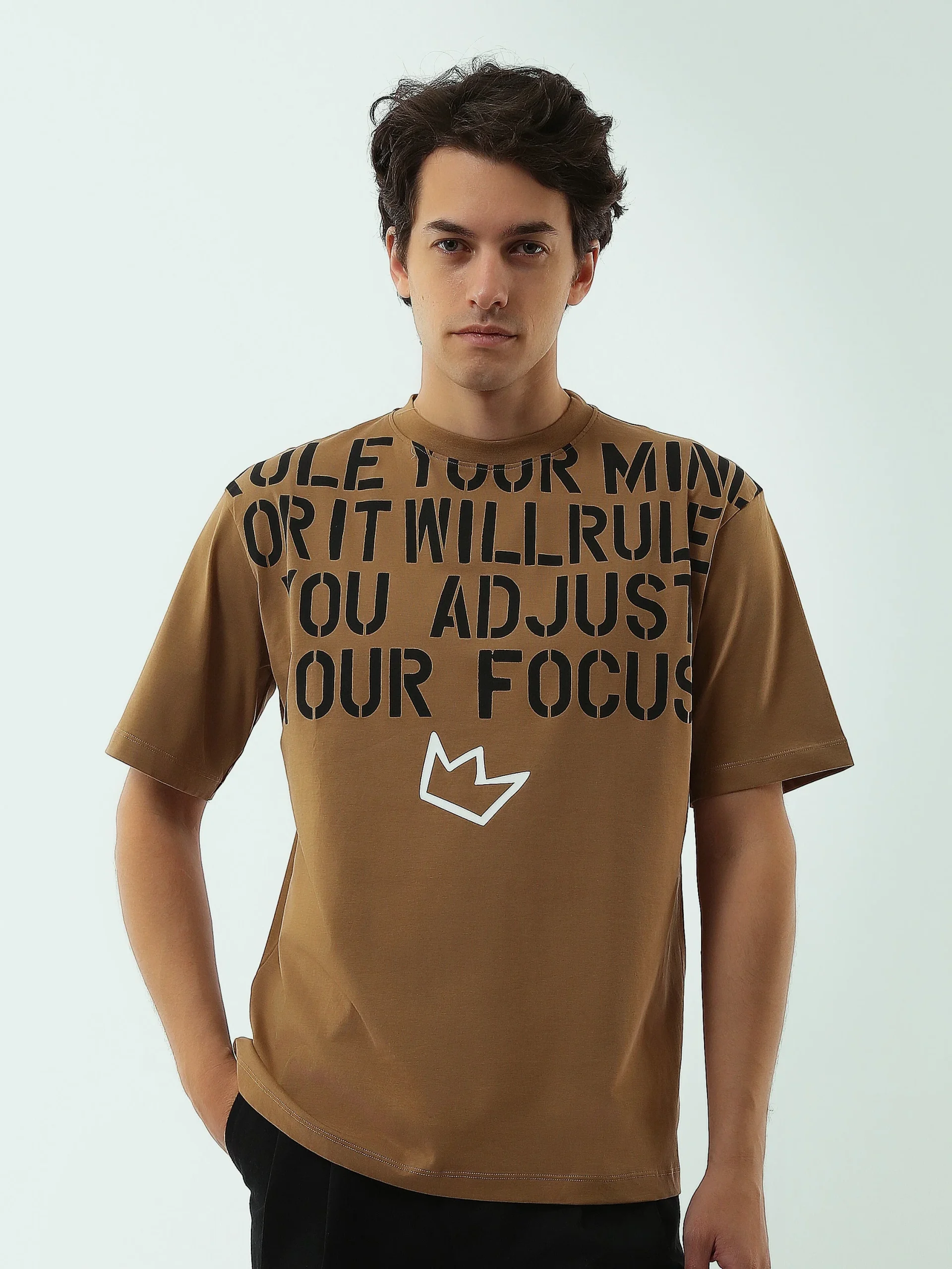 Exprimez votre énergie et votre style avec ce t-shirt homme à imprimé motivant. Conçu pour vous offrir à la fois confort et originalité, ce t-shirt est l’incontournable de la garde-robe décontractée. L’imprimé audacieux « RULE YOUR MIND » avec un design moderne et un petit logo de couronne ajoutent une touche de caractère à votre look quotidien.