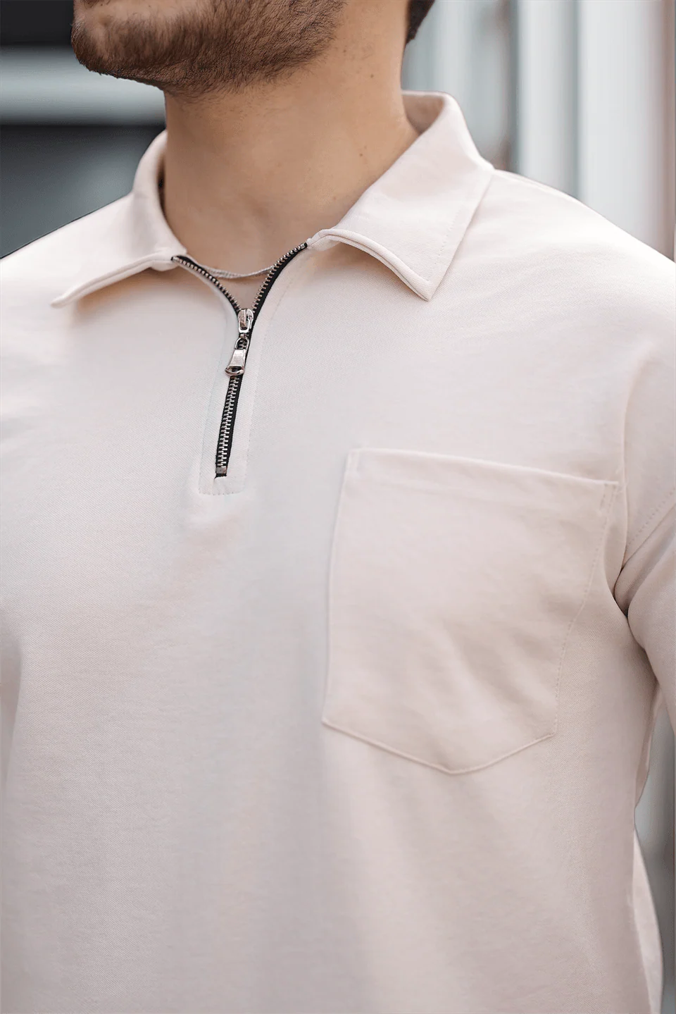 T‑shirt homme premium à demi‑fermeture zippée avec poche unique sur la poitrine, alliant style moderne, fonctionnalité et confort. Le demi‑zip apporte une touche sportive et dynamique tandis que la poche ajoute du caractère utile à ce haut casual chic.
