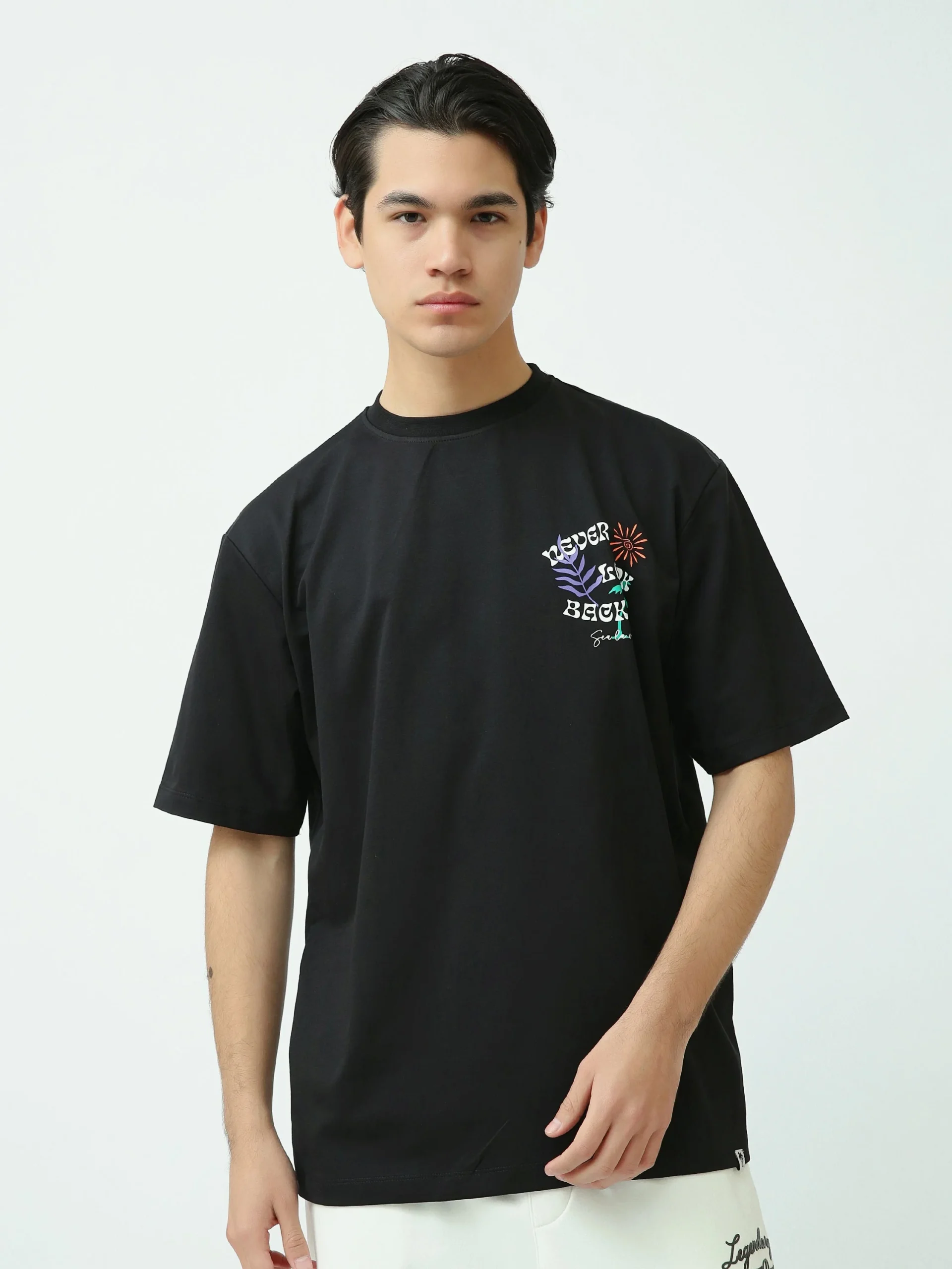 Ce t-shirt homme noir se démarque par son imprimé graphique fort et coloré, apportant une touche créative et moderne au look. Le design au dos, accompagné de motifs inspirés de la nature et d’un message visuel impactant, donne à ce modèle une vraie identité urbaine.