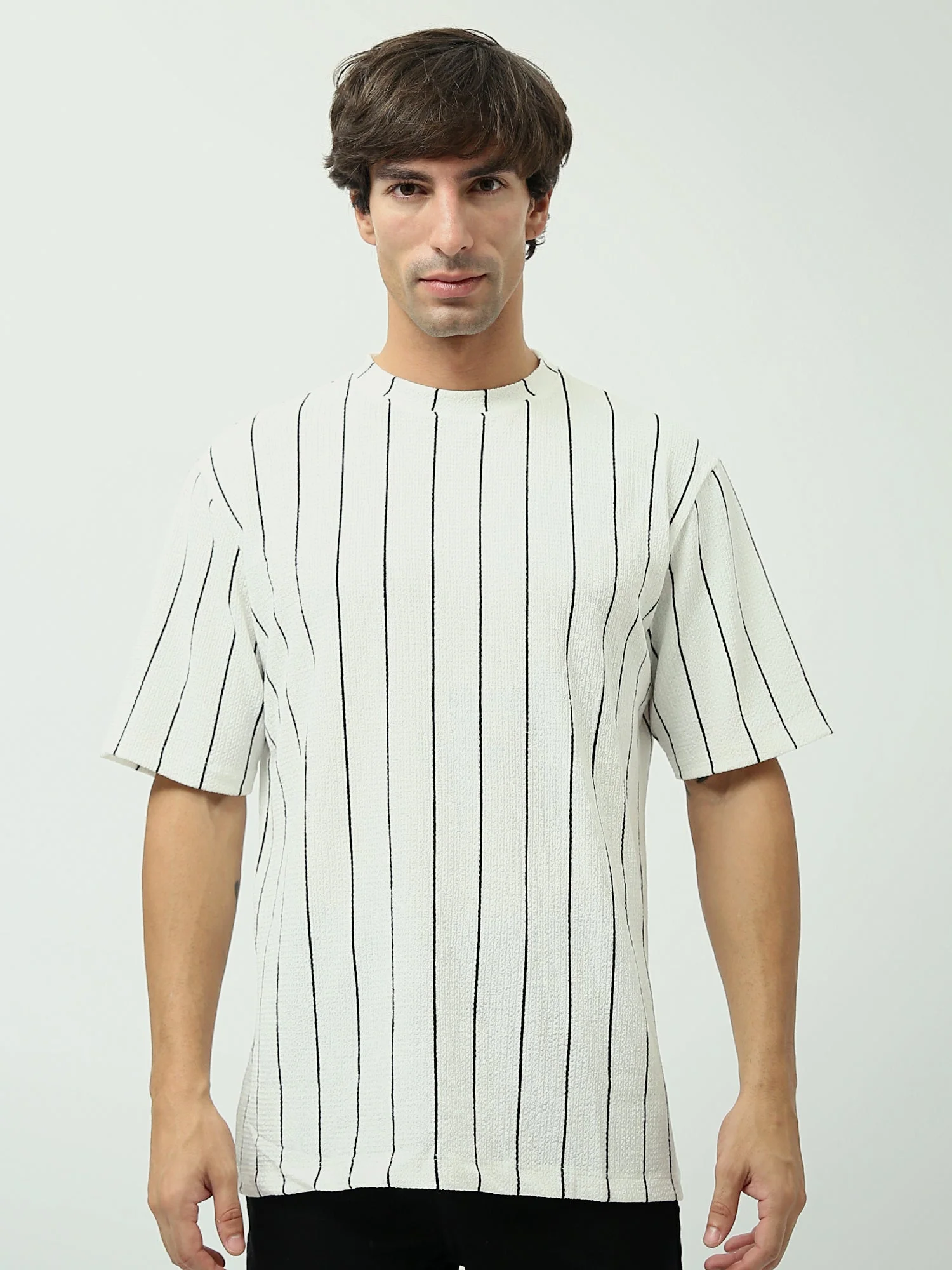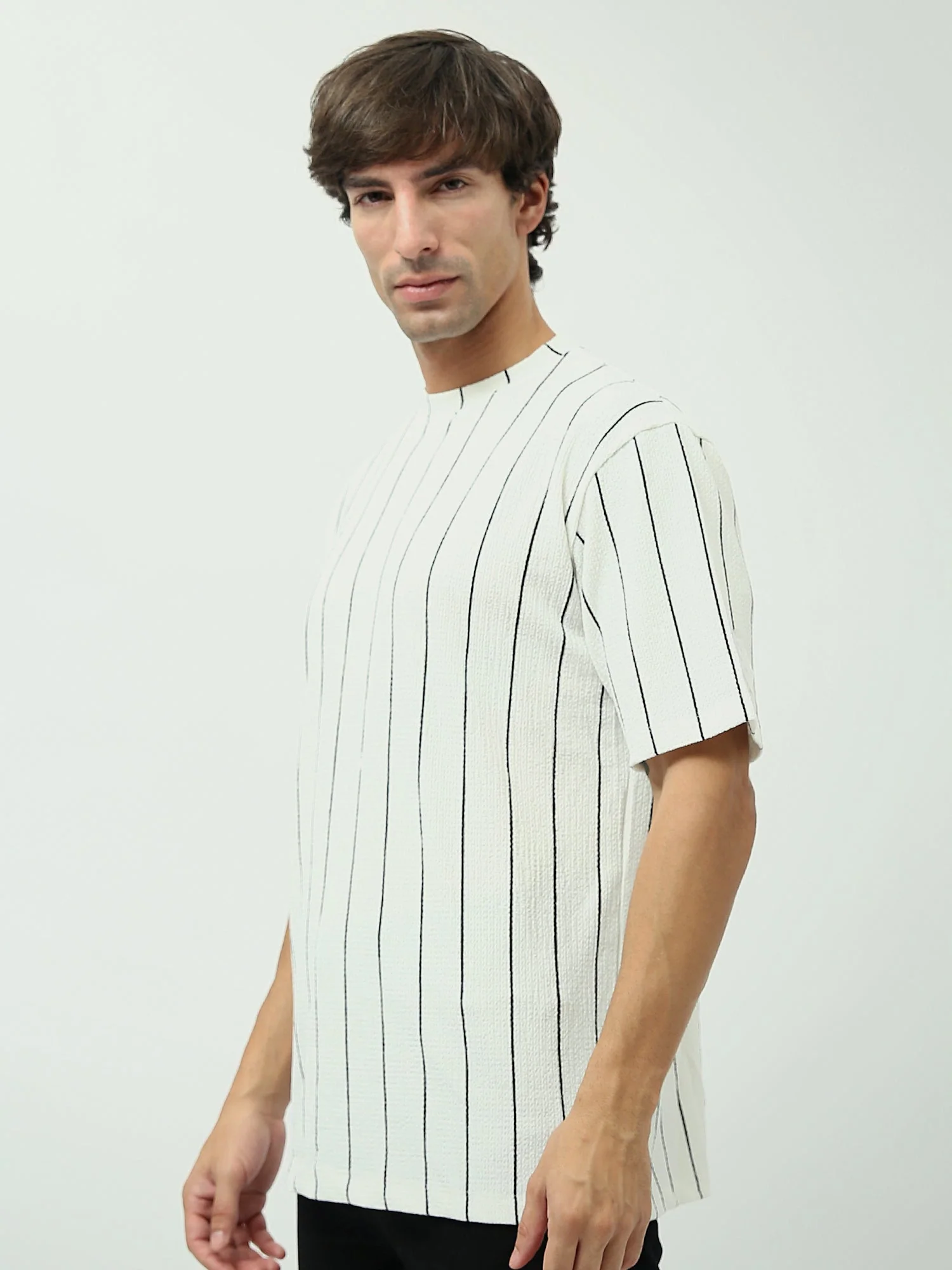 T-shirt Homme Off-White à Rayures Verticales – Style Moderne et Élégant – TSH24SARO20129TM1