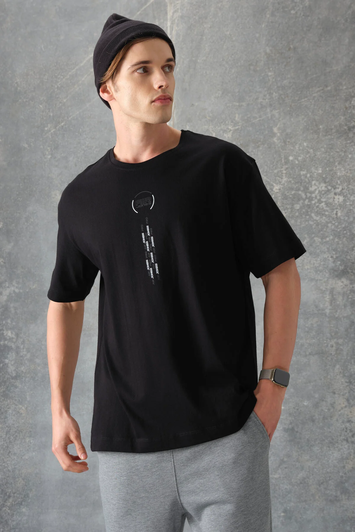 T-shirt homme oversize imprimé en coton épais 100 % au toucher doux- 88355