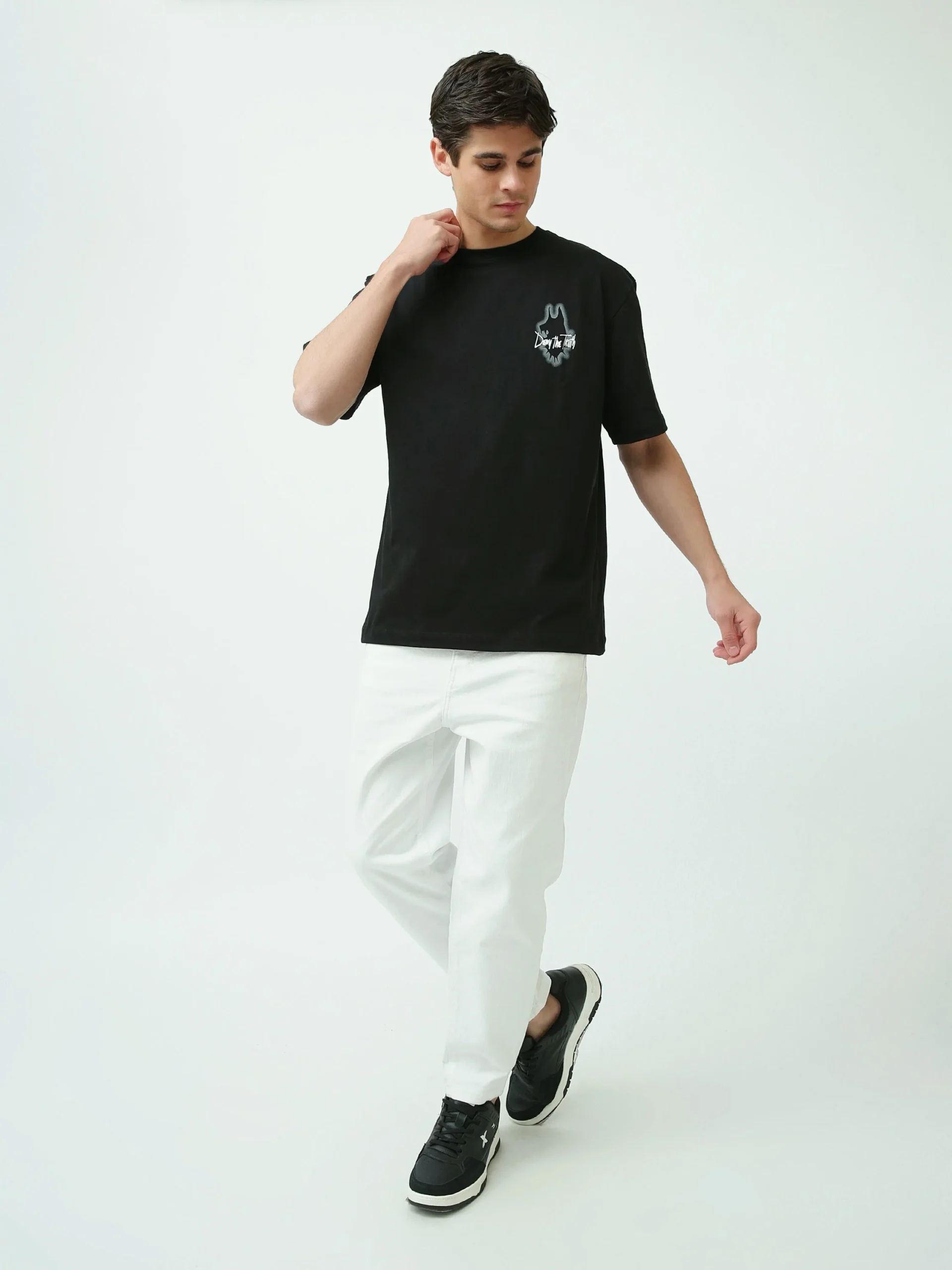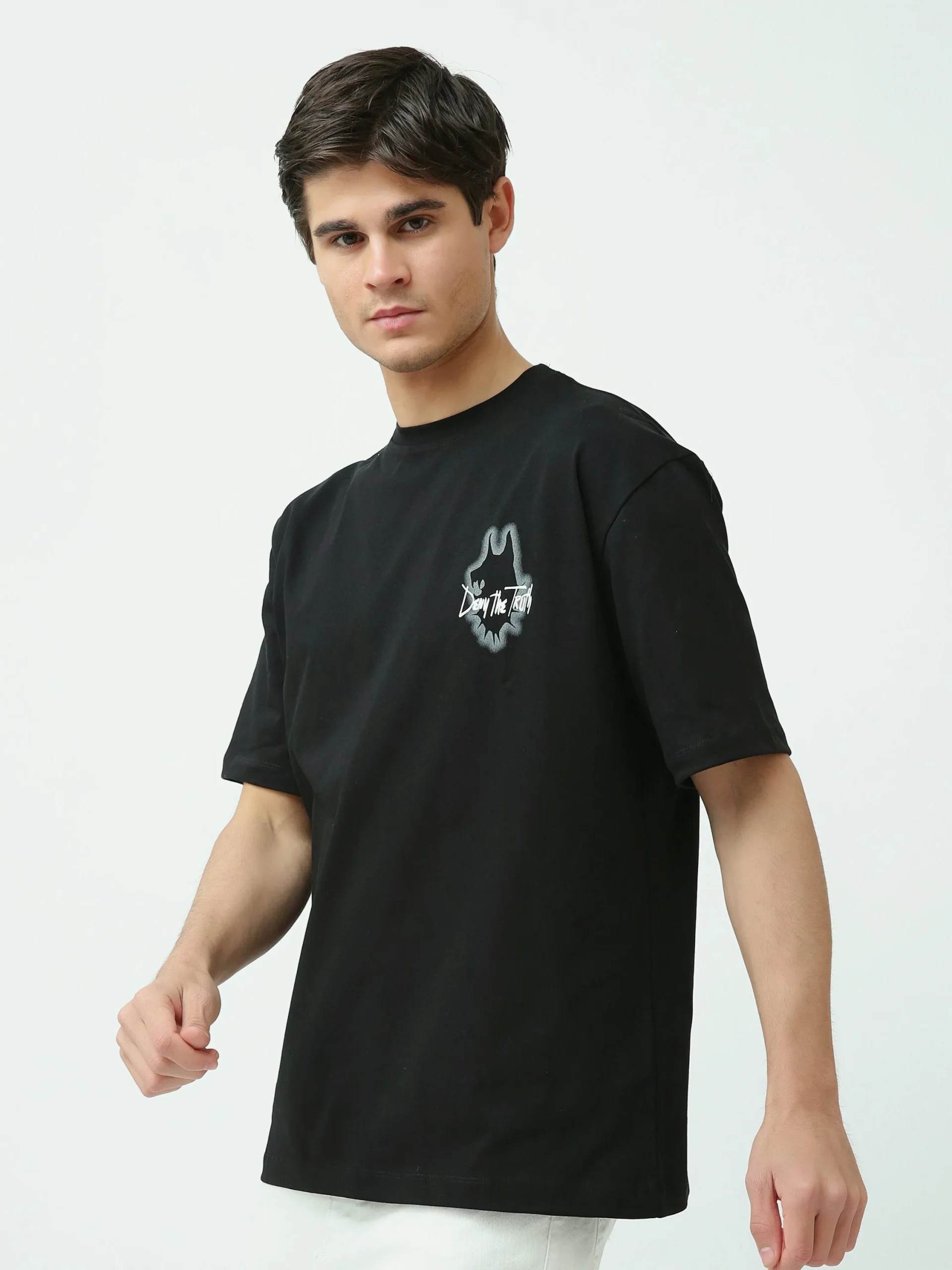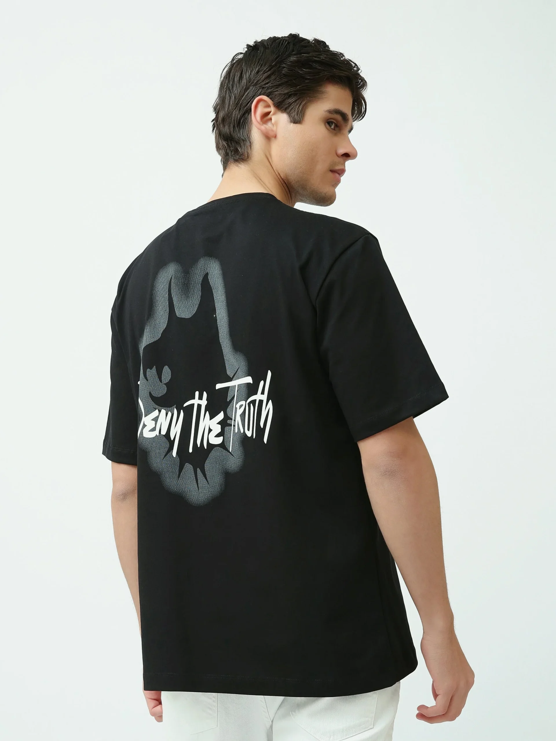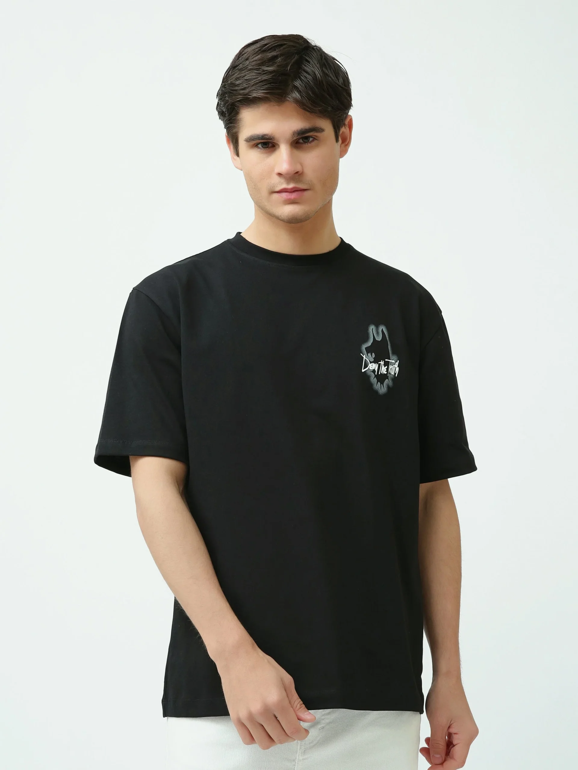 T-shirt Homme Oversized Fit – Imprimé ‘Deny the Truth’ en Noir – TSH25SPRO20487TM1