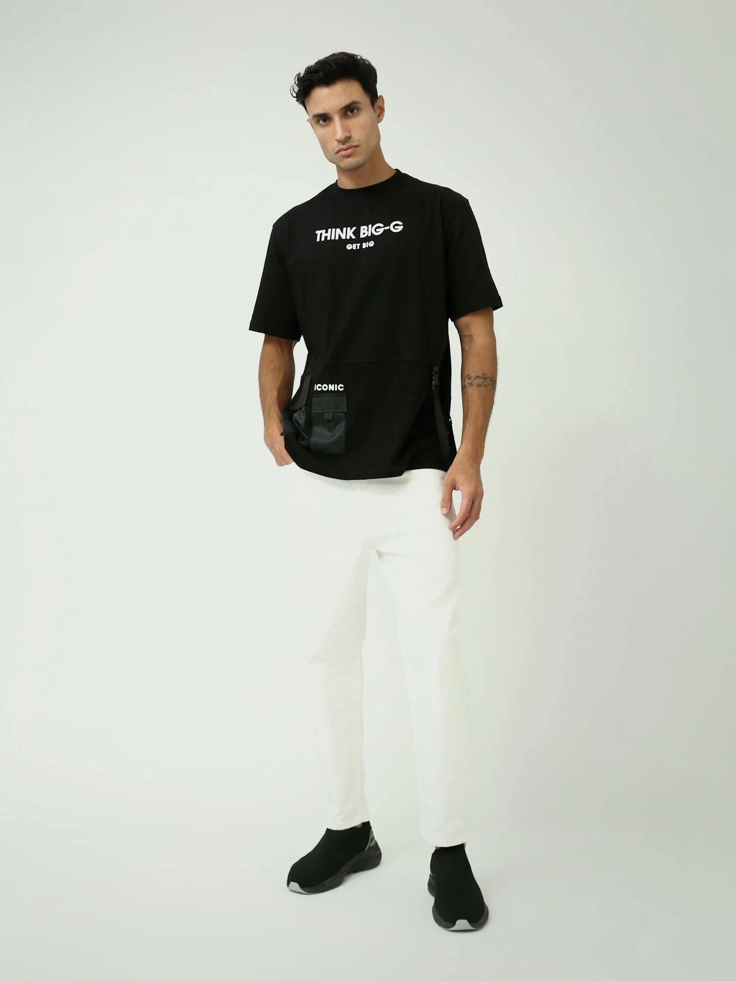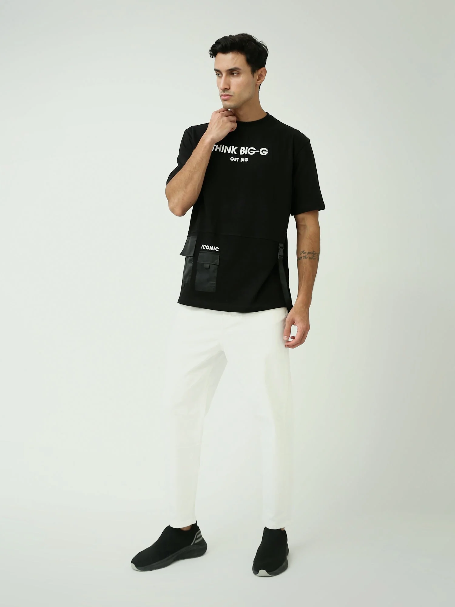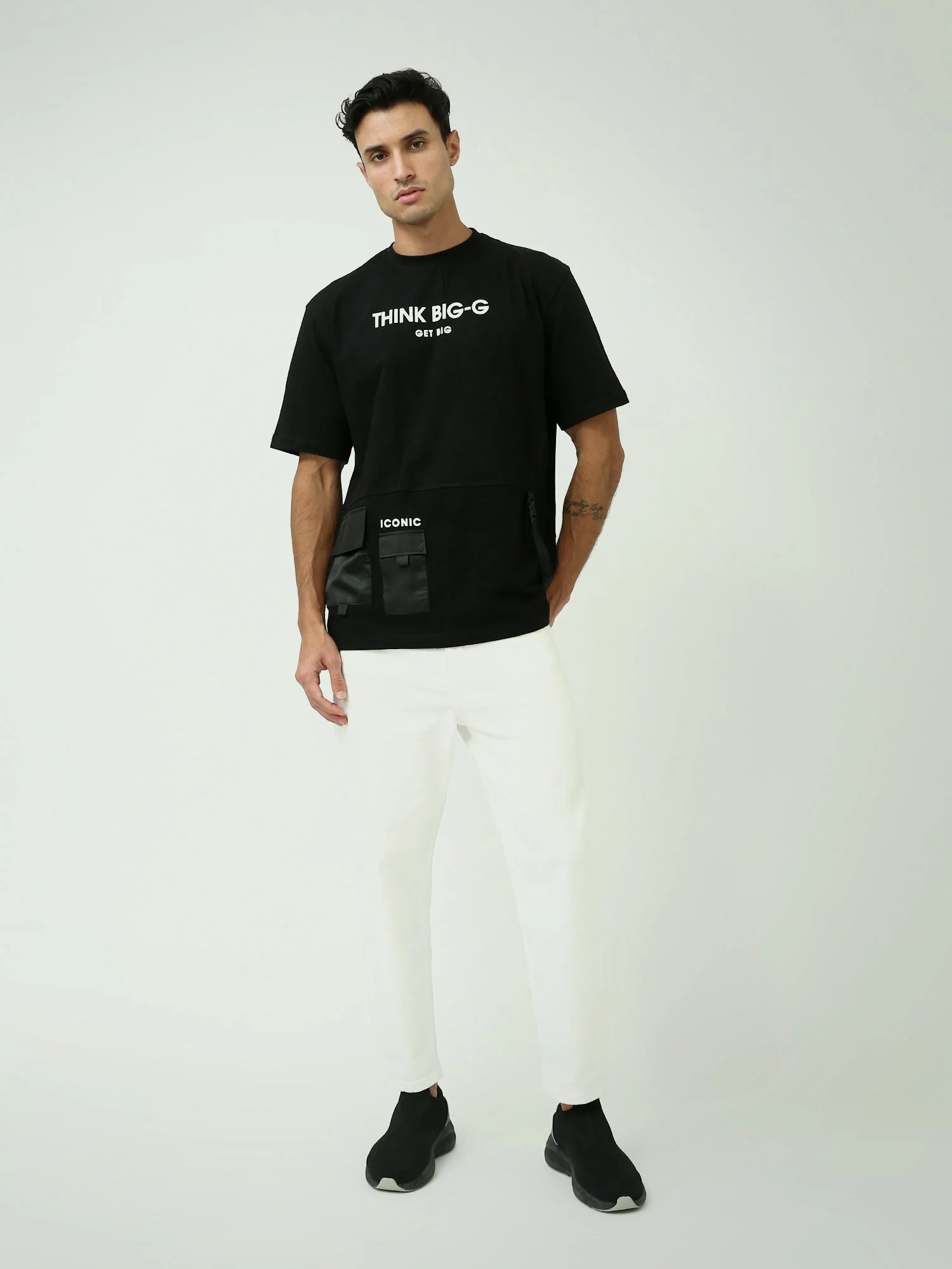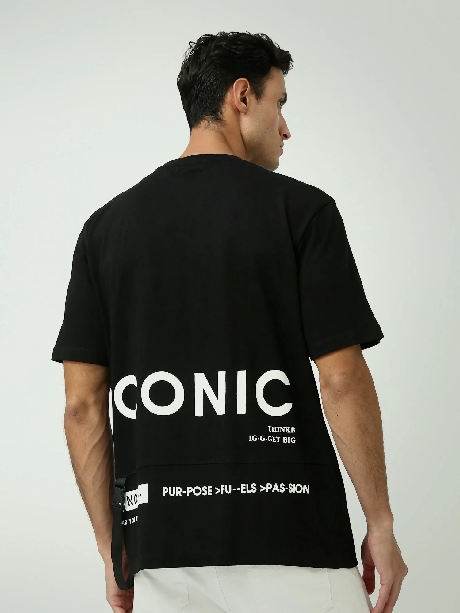 T-shirt Homme Oversized Fit – Imprimé ‘ICONIC’ en Noir – TSH24SPRO20145TM1
