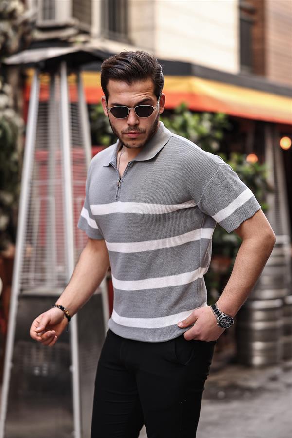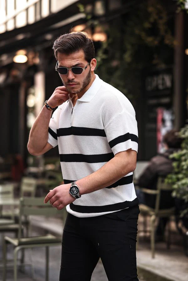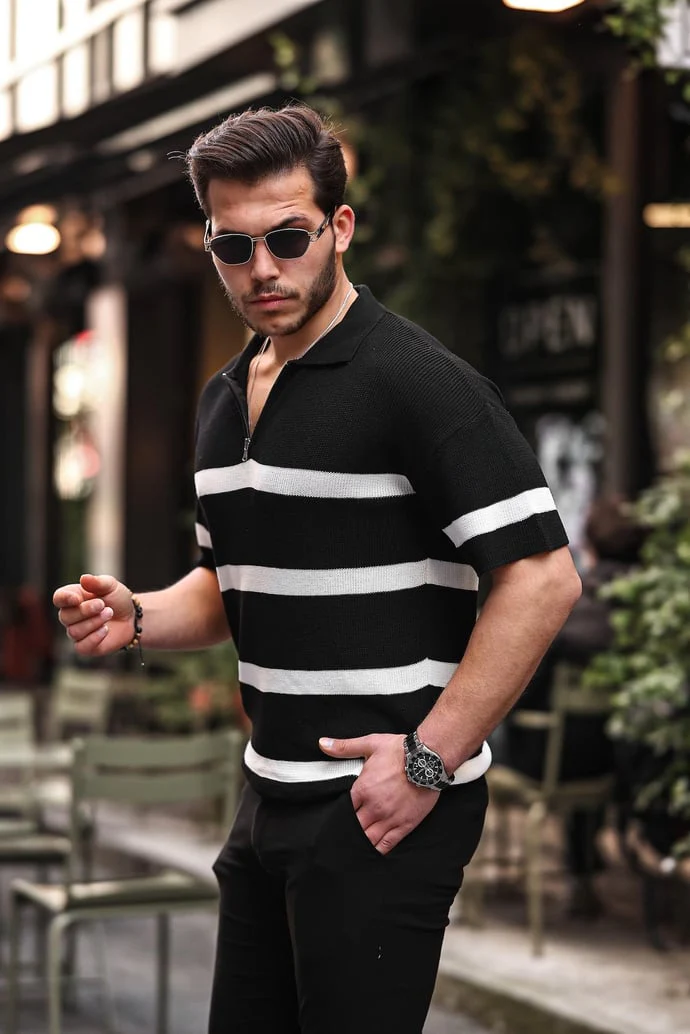 T‑shirt homme en tricot oversize à demi‑fermeture zippée et motif rayé, une pièce qui allie confort et élégance. Sa coupe oversize procure une sensation de liberté et de décontraction, idéale pour un look casual chic ou streetwear moderne.