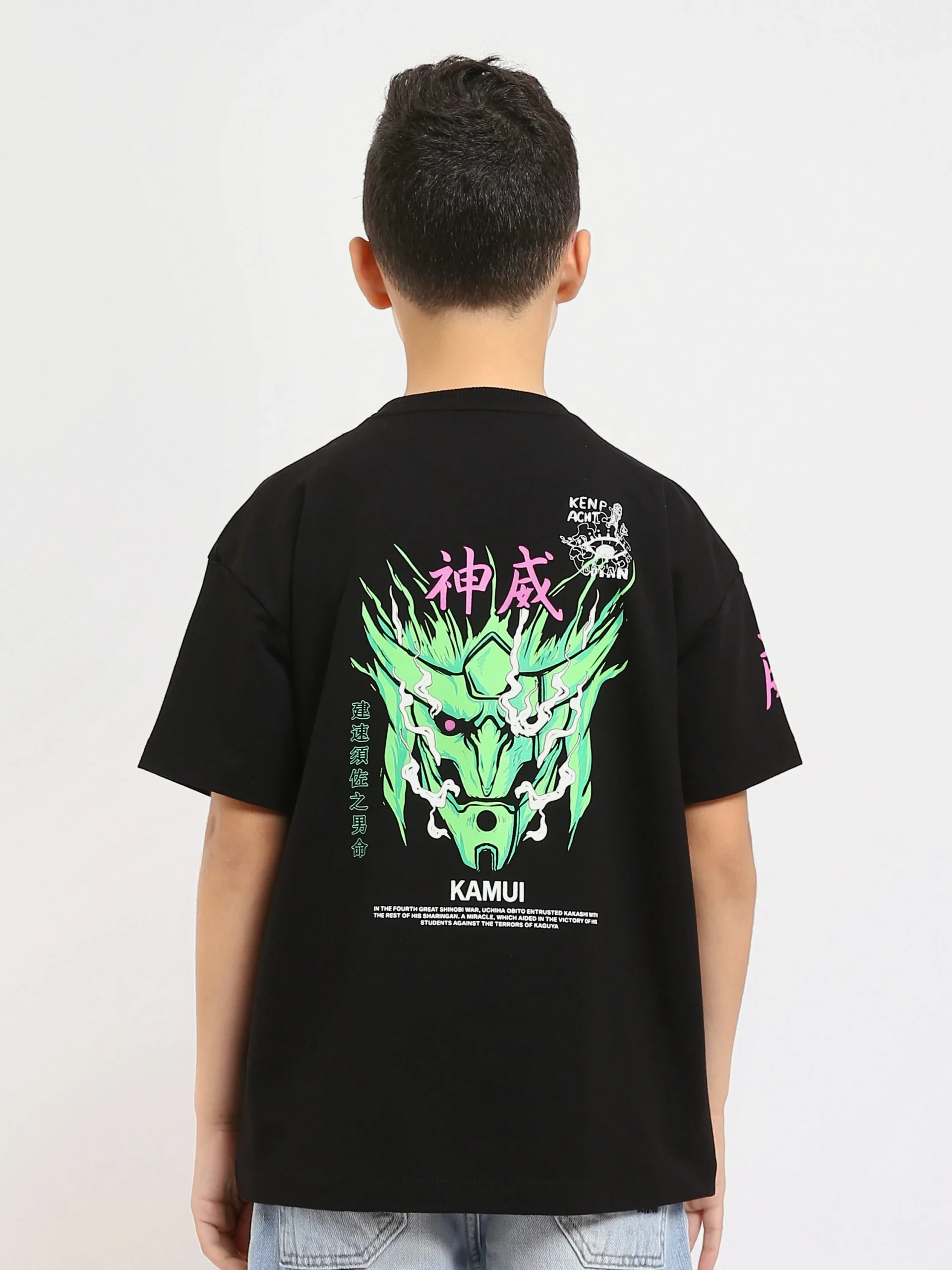 Apportez une touche de style unique à la garde-robe de votre garçon avec ce t-shirt noir à imprimé KAMUI. Son design audacieux, avec des graphiques colorés sur le devant et le dos, capte l’attention et donne un look moderne et dynamique. Ce t-shirt est fabriqué à partir de coton doux pour garantir un confort optimal tout au long de la journée. Parfait pour un style urbain, il se porte facilement avec un jean ou un pantalon décontracté pour un look à la fois tendance et confortable.