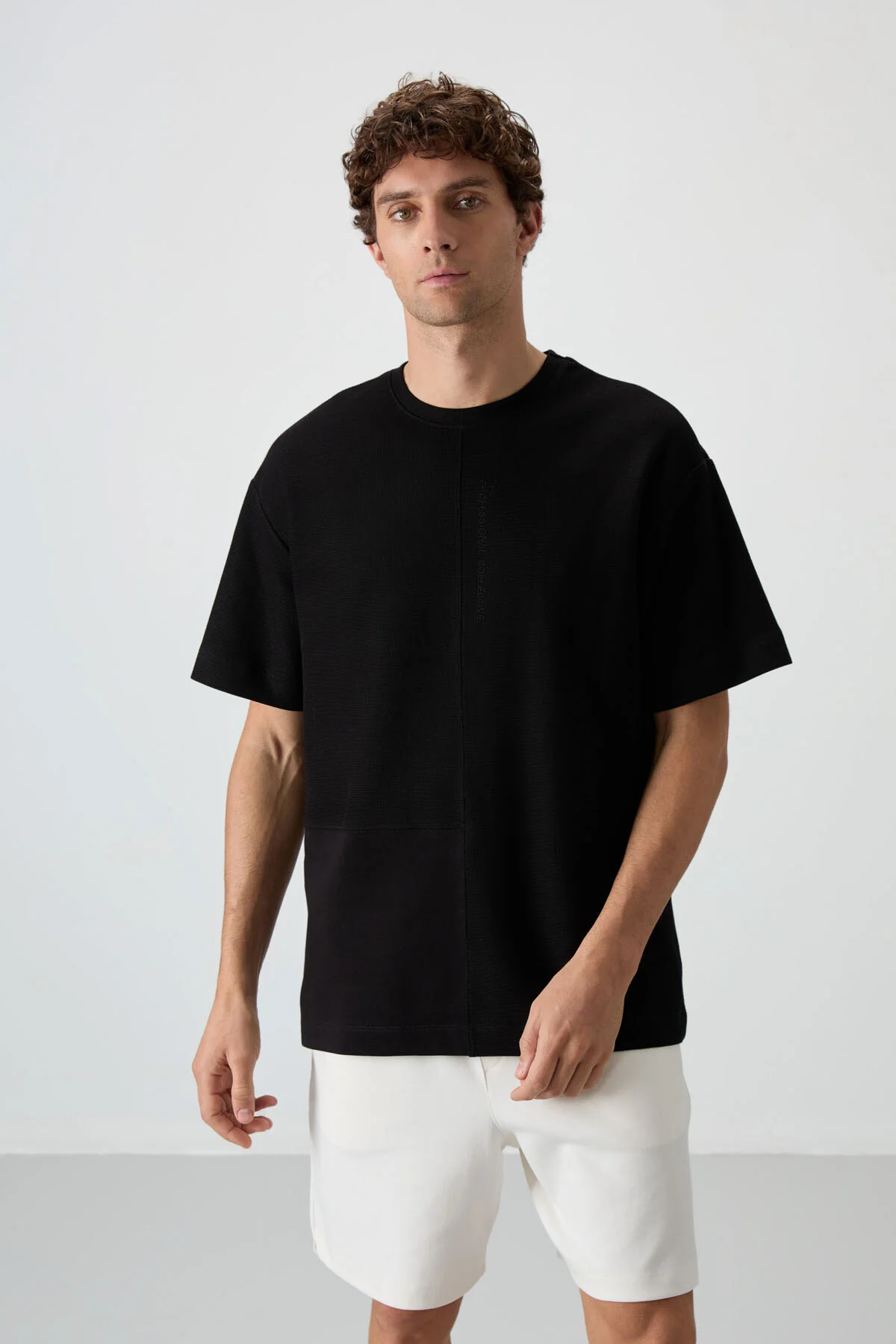 T‑shirt oversize pour homme en coton épais à surface texturée, un basique revisité combinant confort et style casual moderne. Sa matière 100 % coton offre un toucher doux et une sensation agréable, idéale pour les journées détendues ou les looks streetwear.