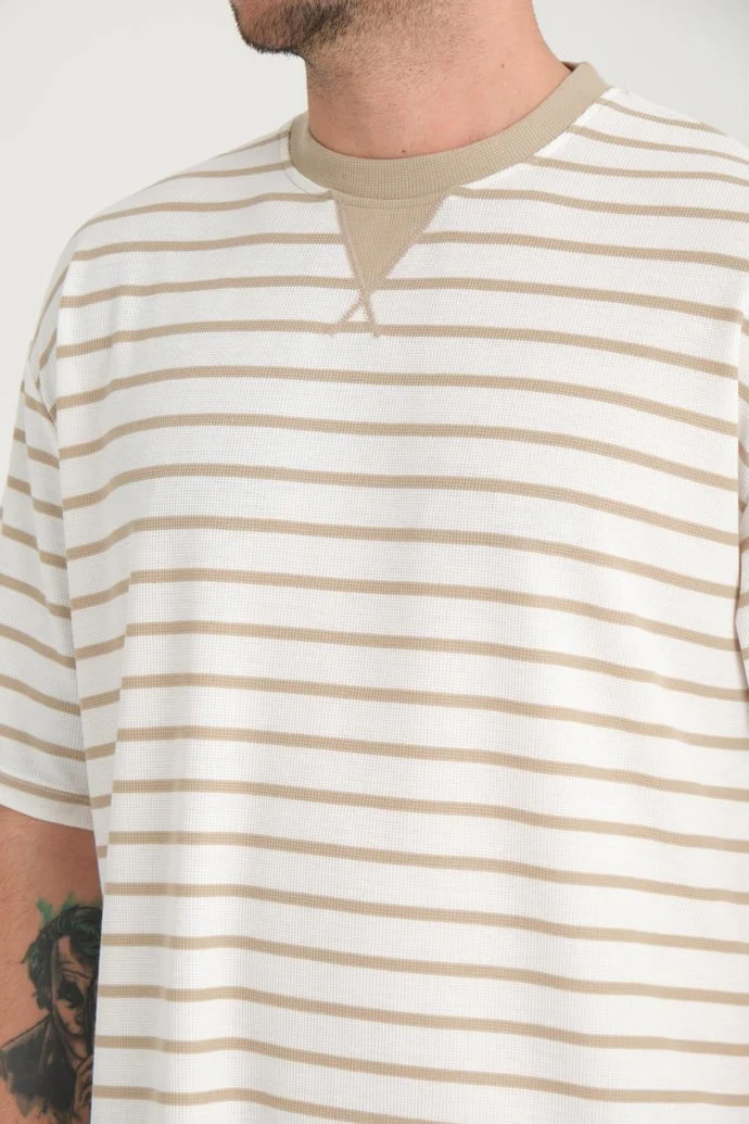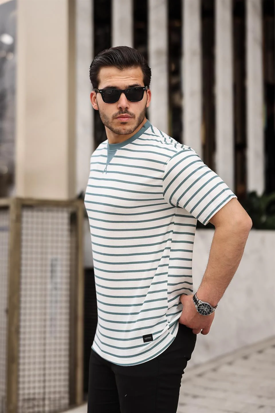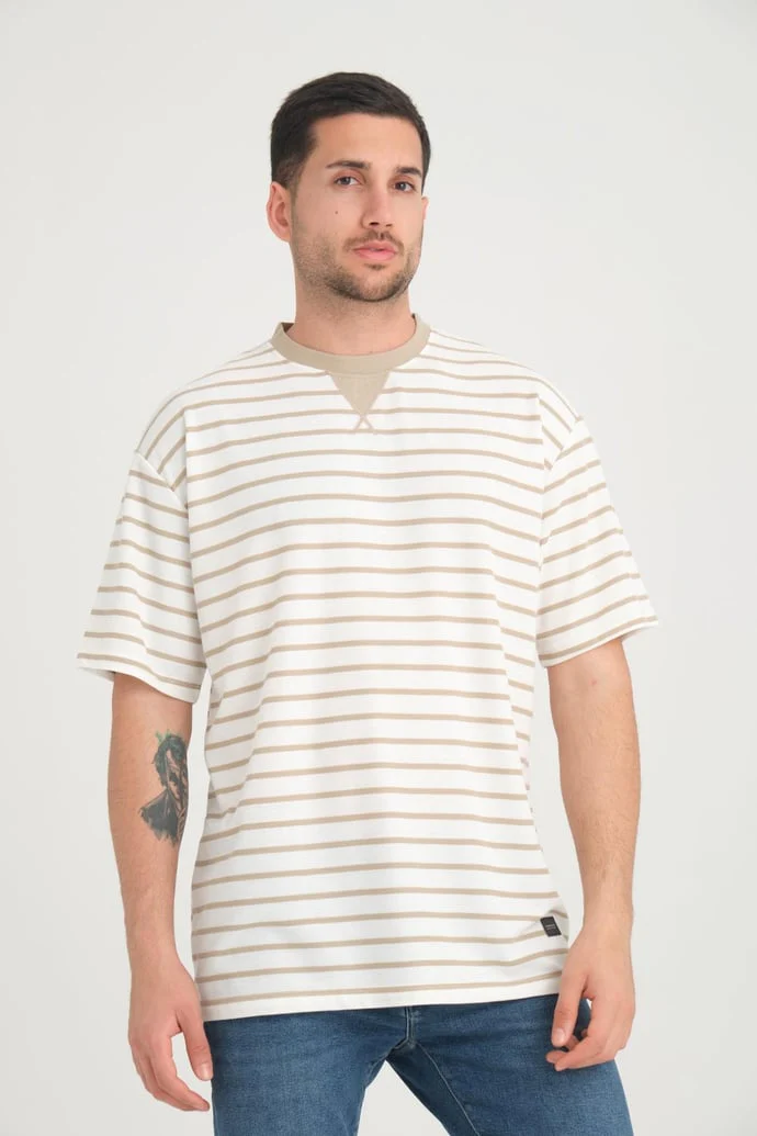 Découvrez le t‑shirt homme oversize rayé avec détail de col enveloppe, une pièce qui allie élégance dans les détails et confort optimal. Son design oversize et ses lignes simples et stylées offrent une silhouette moderne et détendue, idéale pour enrichir vos tenues quotidiennes ou vos looks plus habillés.