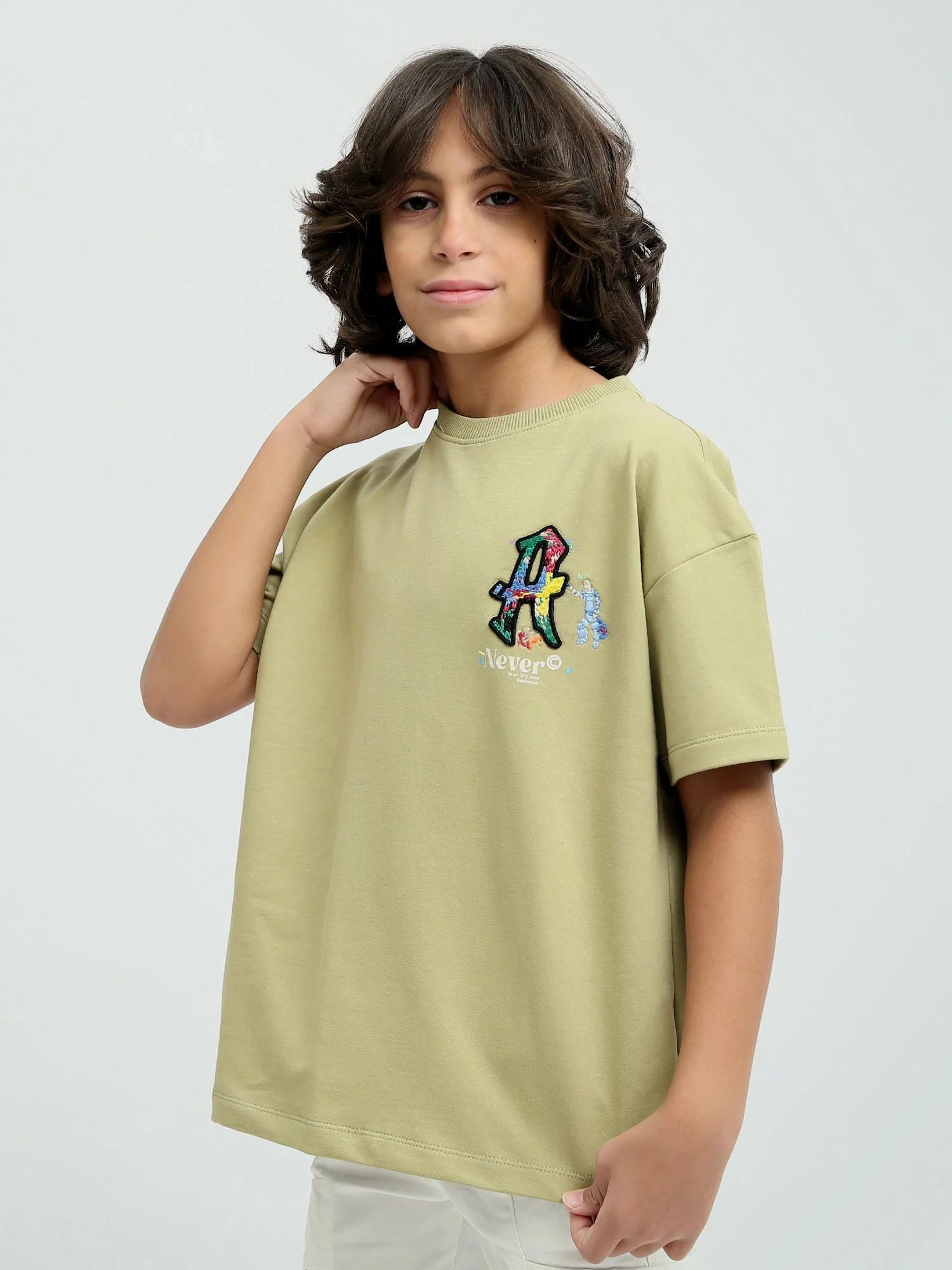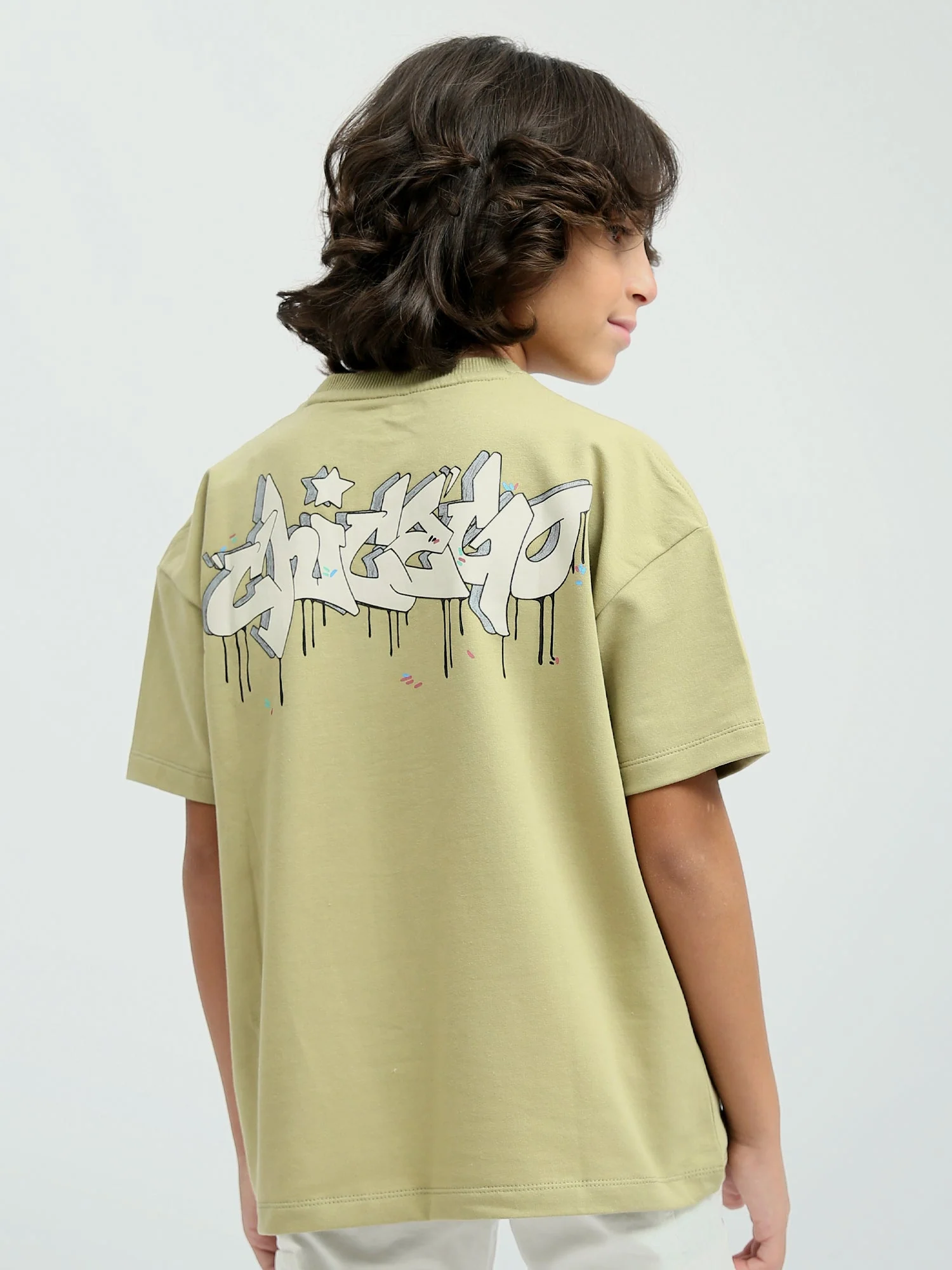 T-shirt Oversized Garçon « Graffiti Never Give Up » – Design créatif avec imprimé coloré – TSH24SPRO32659TB1