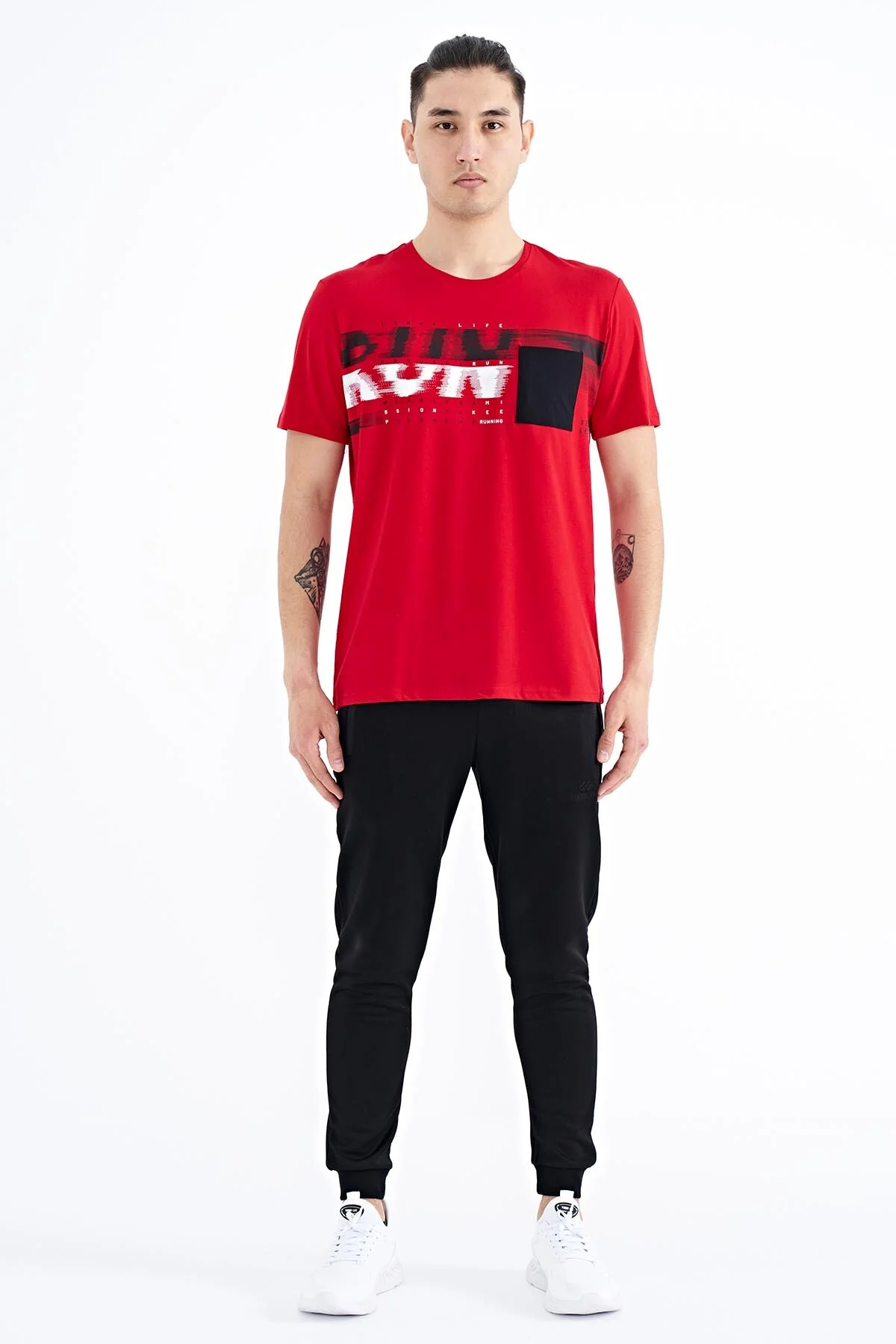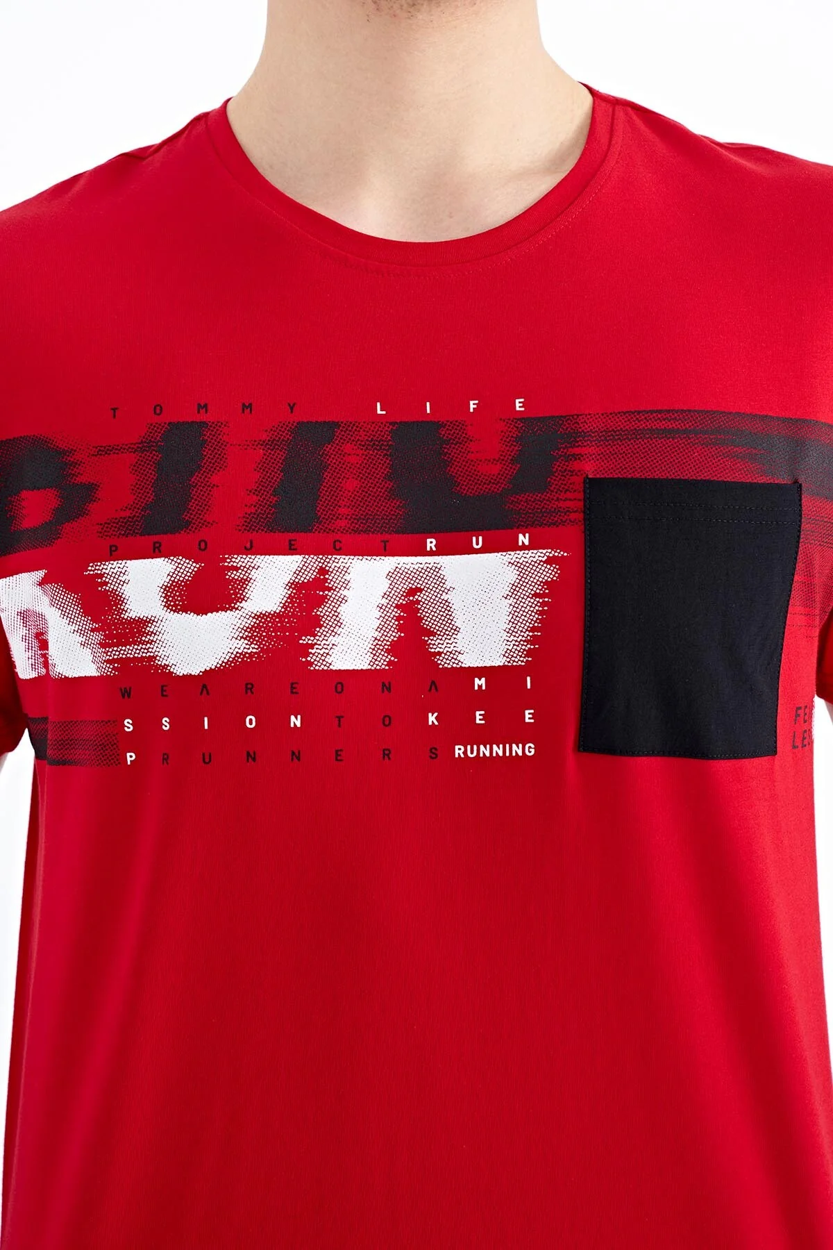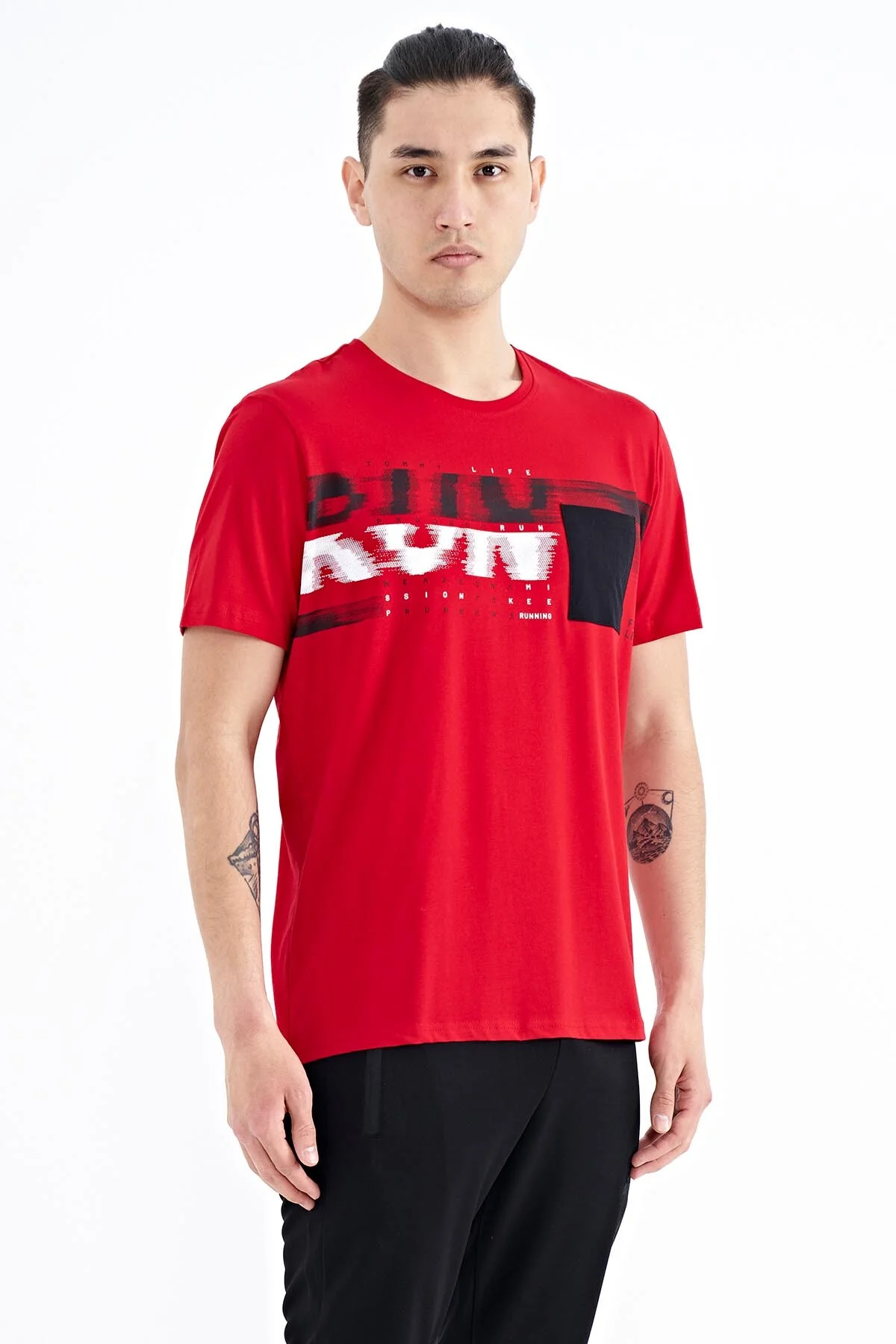 T-shirt pour homme à col rond avec détail imprimé sur la poche avant – 88200