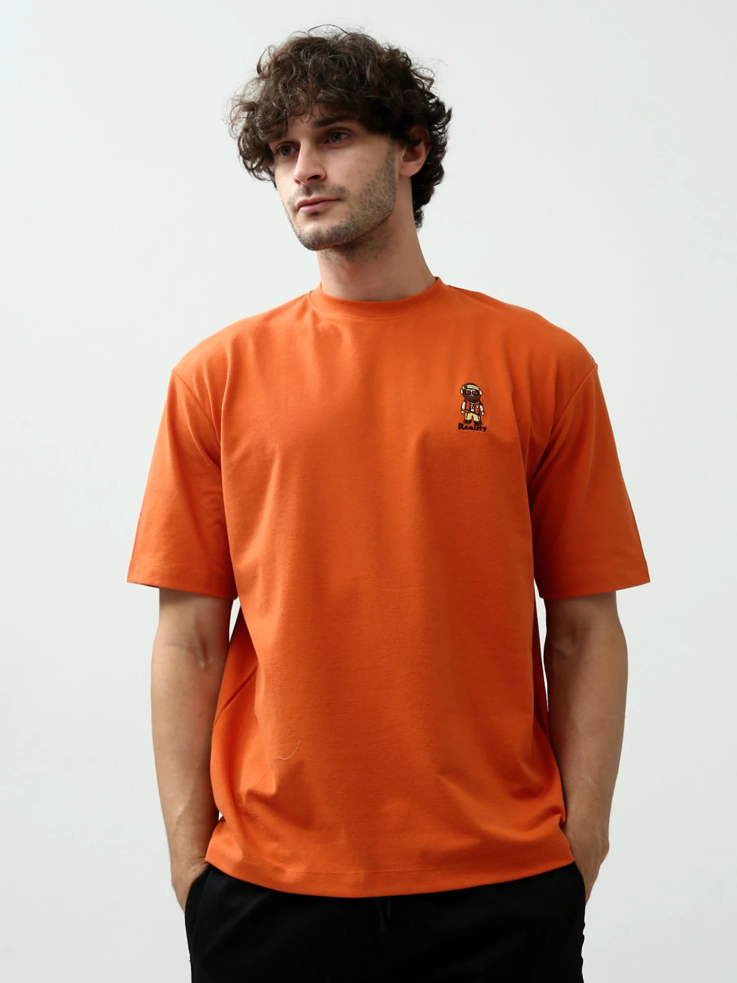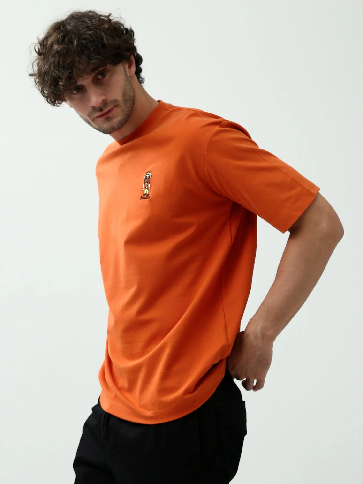 T-shirt pour homme moderne de couleur orange attrayante, orné d’une petite impression sur la poitrine représentant un personnage original. Ce t-shirt est fabriqué en tissu coton confortable, offrant un confort optimal tout au long de la journée, ce qui en fait le choix parfait pour les looks quotidiens. Il peut être facilement assorti avec des pantalons de sport ou des jeans pour un look dynamique et non conventionnel.