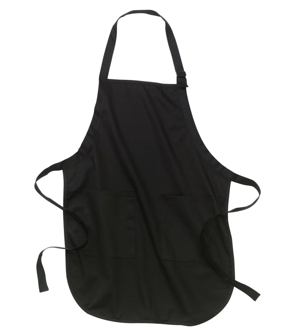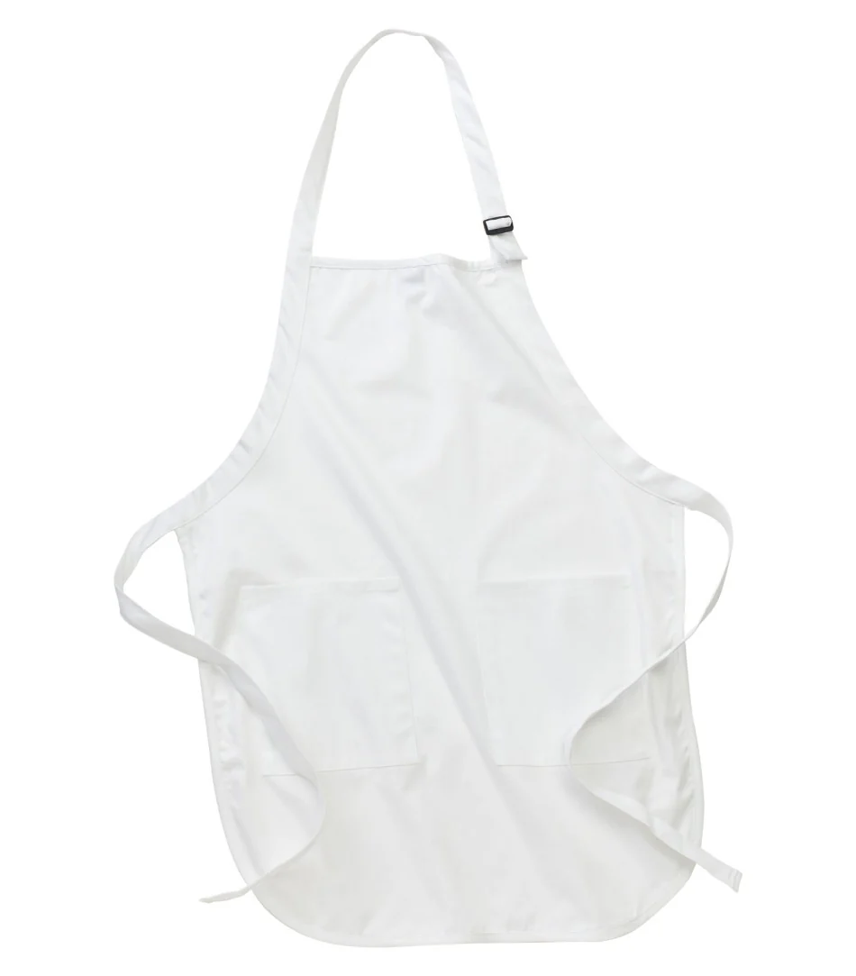 Tablier deux poches plaquées à la taille et une poche stylo, cou ajustable.