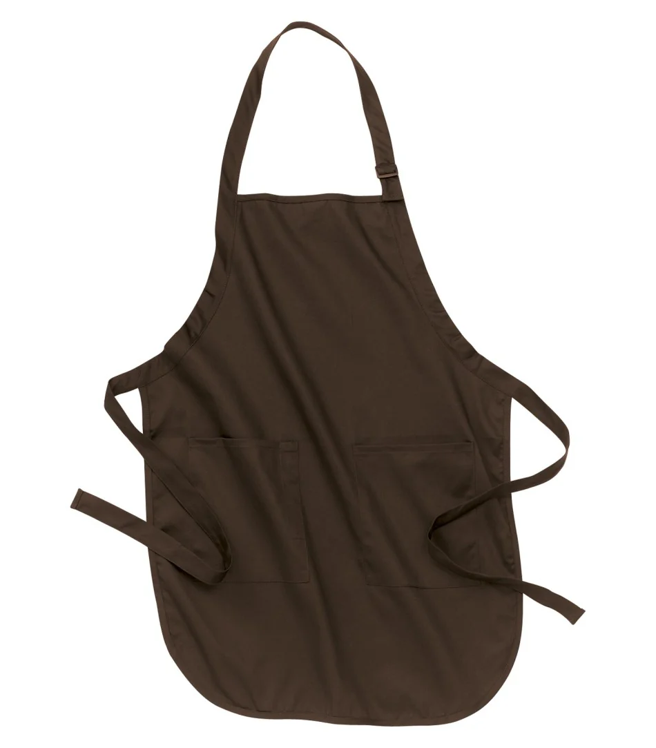 Tablier deux poches plaquées à la taille et une poche stylo, cou ajustable. Matériaux : Tissu 100% coton avec une finition anti-salissure pour une protection accrue contre les taches