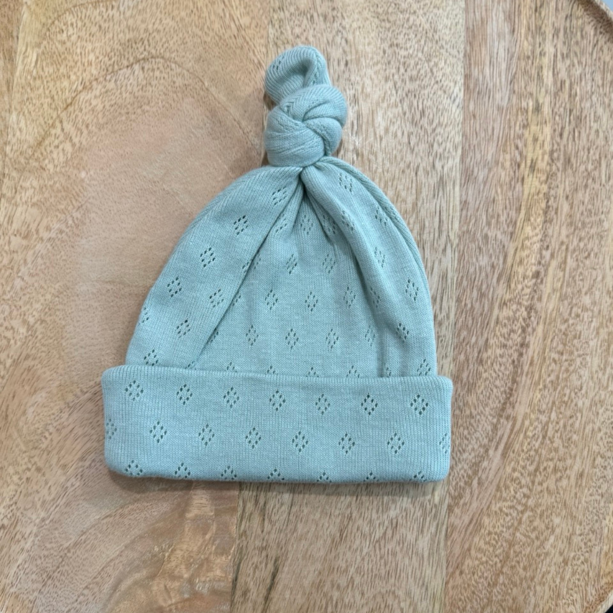 Bonnet de naissance en coton jersey vert sauge