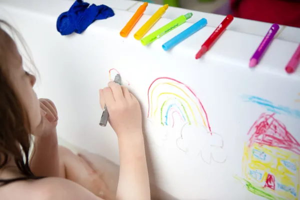 Chaque set comprend huit crayons de couleur rétractables, garantissant qu’ils sont toujours prêts à l’emploi sans risque de salissure. De plus, un chiffon de nettoyage est inclus dans le paquet, ce qui facilite le nettoyage des surfaces après le jeu. Un simple coup de chiffon humide suffit pour effacer les dessins, permettant aux parents de garder la salle de bain propre et rangée.