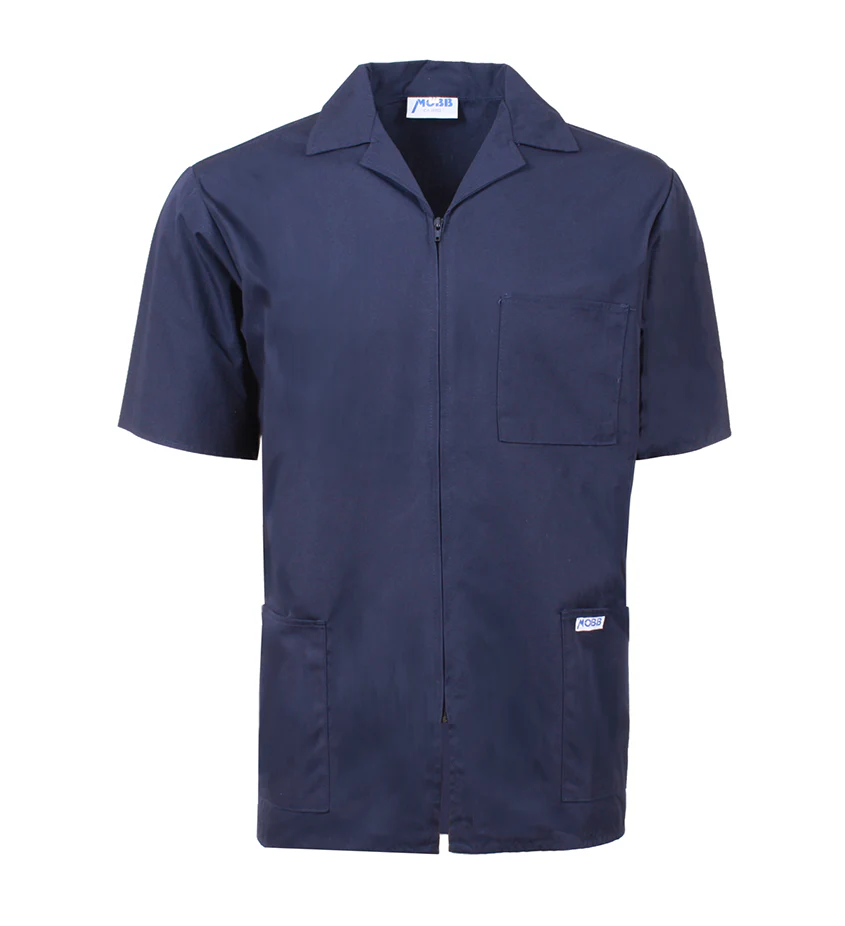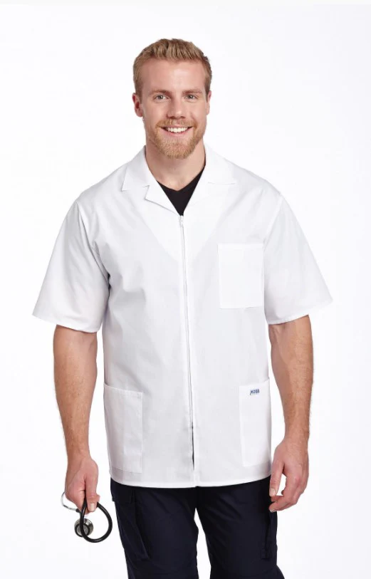 Veste de consultation de Mobb, fermeture éclair, manches courtes, deux grandes poches. Matériaux : Tissu 65% polyester 35% coton