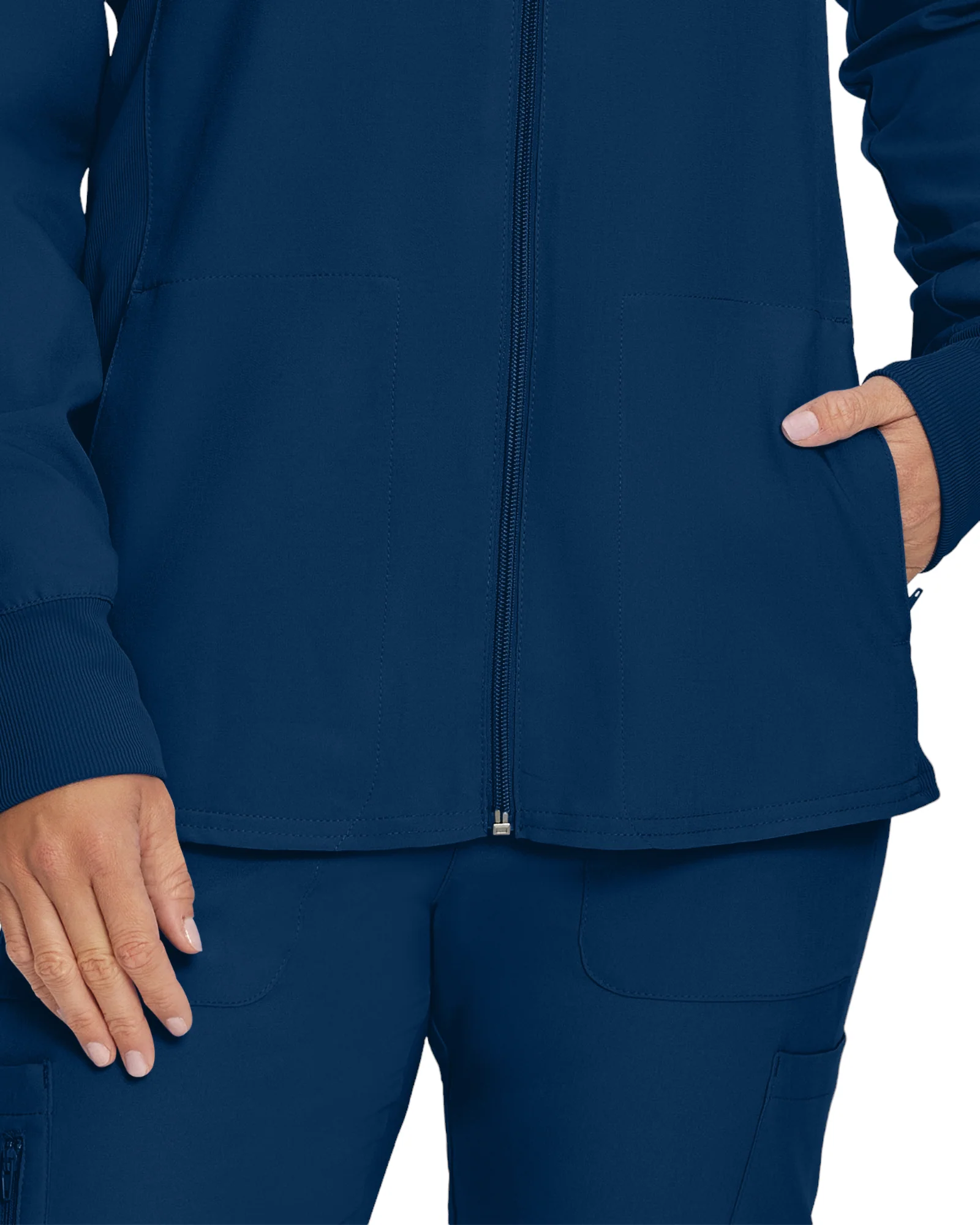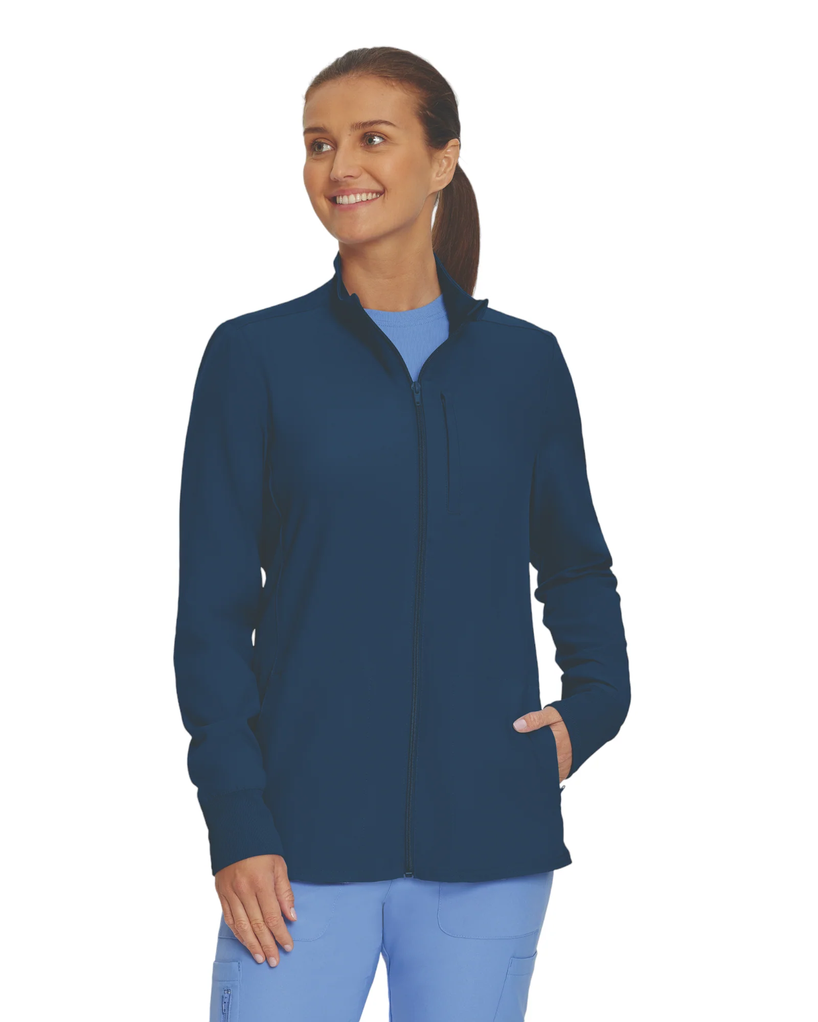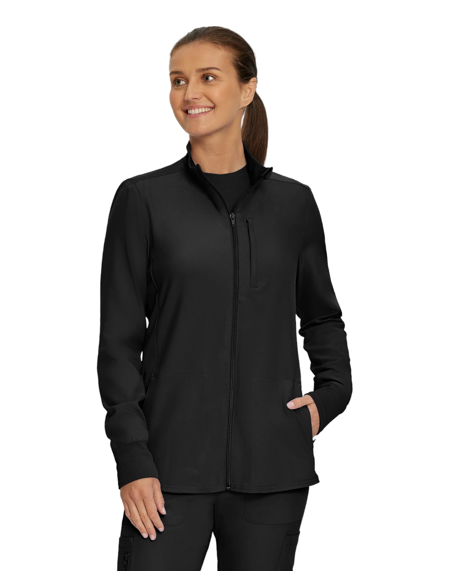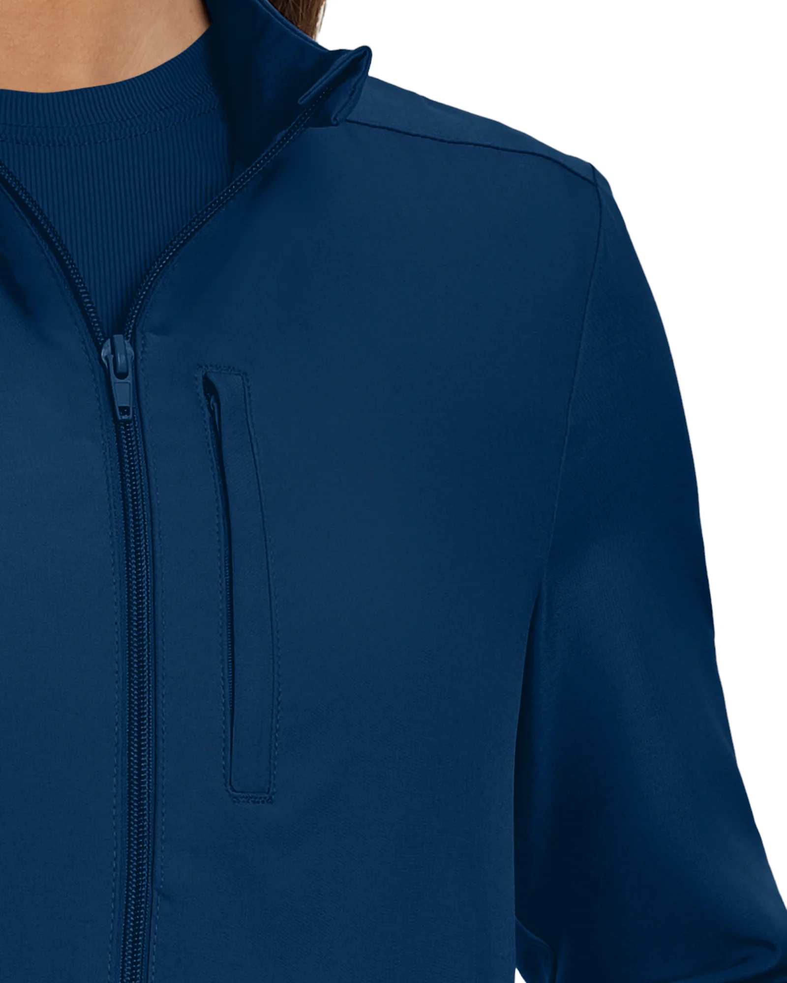 Cette veste sportive à fermeture à glissière est le vêtement d’extérieur idéal à superposer à votre haut de scrub. Elle est dotée de grandes poches fonctionnelles dans les coutures latérales et d’une poche de poitrine à fermeture à glissière pour ranger vos effets personnels essentiels. Notre coupe s’ajuste au corps tandis que notre tissu super extensible évacuant l’humidité offre le confort et la souplesse nécessaires à votre travail tout au long de la journée.