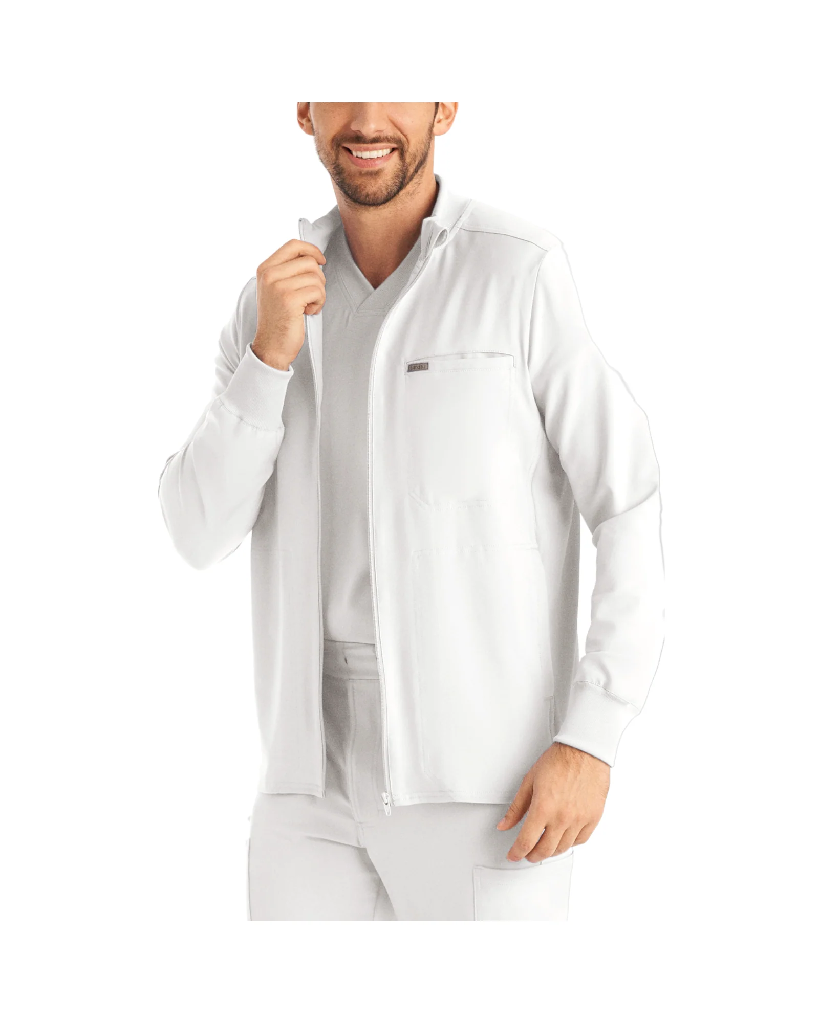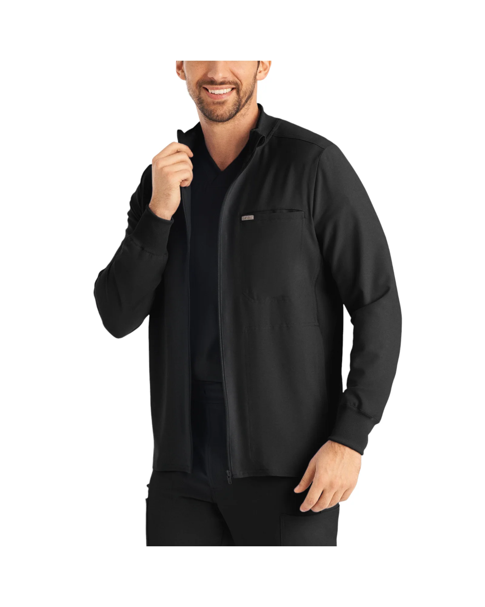 Cette veste sportive à fermeture à glissière est le vêtement d’extérieur idéal à superposer à votre haut col en V. Elle est dotée de grandes poches fonctionnelles dans les coutures latérales et d’une poche de poitrine à fermeture à glissière pour ranger vos effets personnels essentiels. Notre coupe ajustée moderne épouse le corps, tandis que notre tissu super extensible évacuant l’humidité offre le confort et la souplesse nécessaires à votre travail tout au long de la journée.