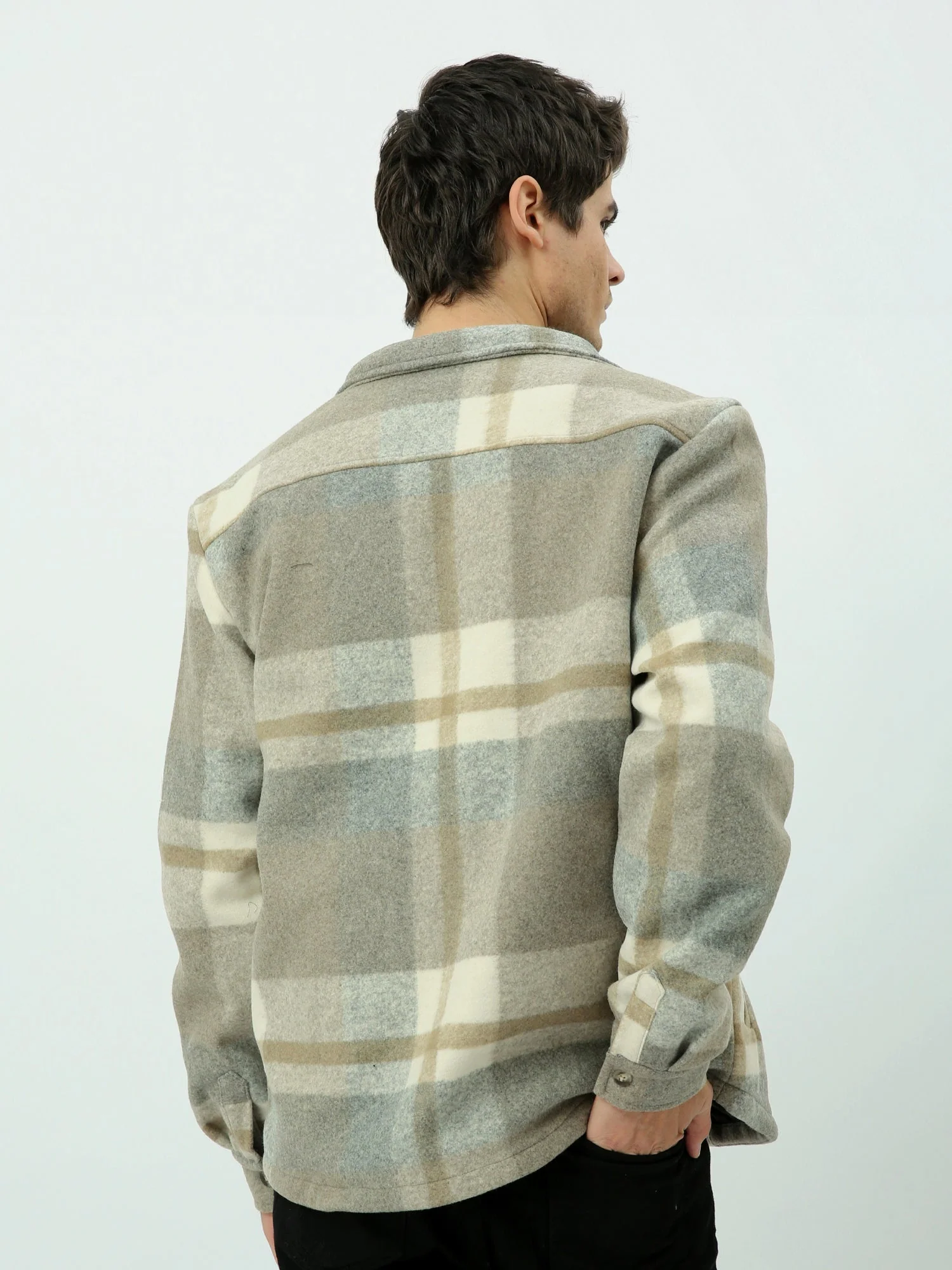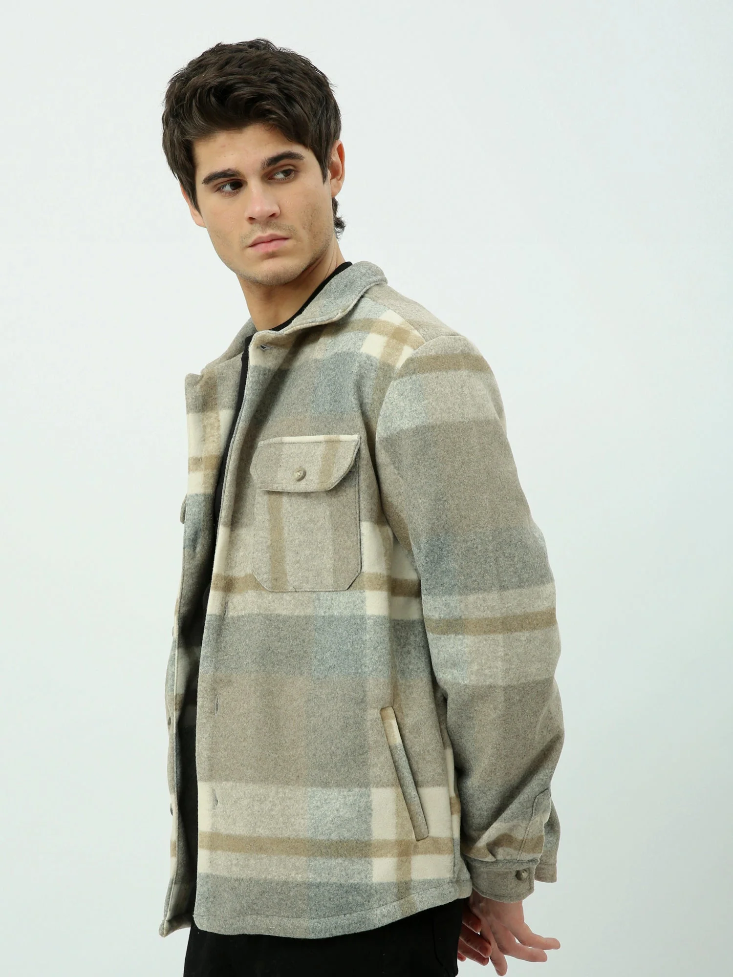 Veste homme d’hiver au design raffiné alliant chaleur et style moderne. Elle se distingue par un motif à carreaux classique dans des tons beige et gris, idéal pour les tenues quotidiennes comme pour les looks semi-formels.